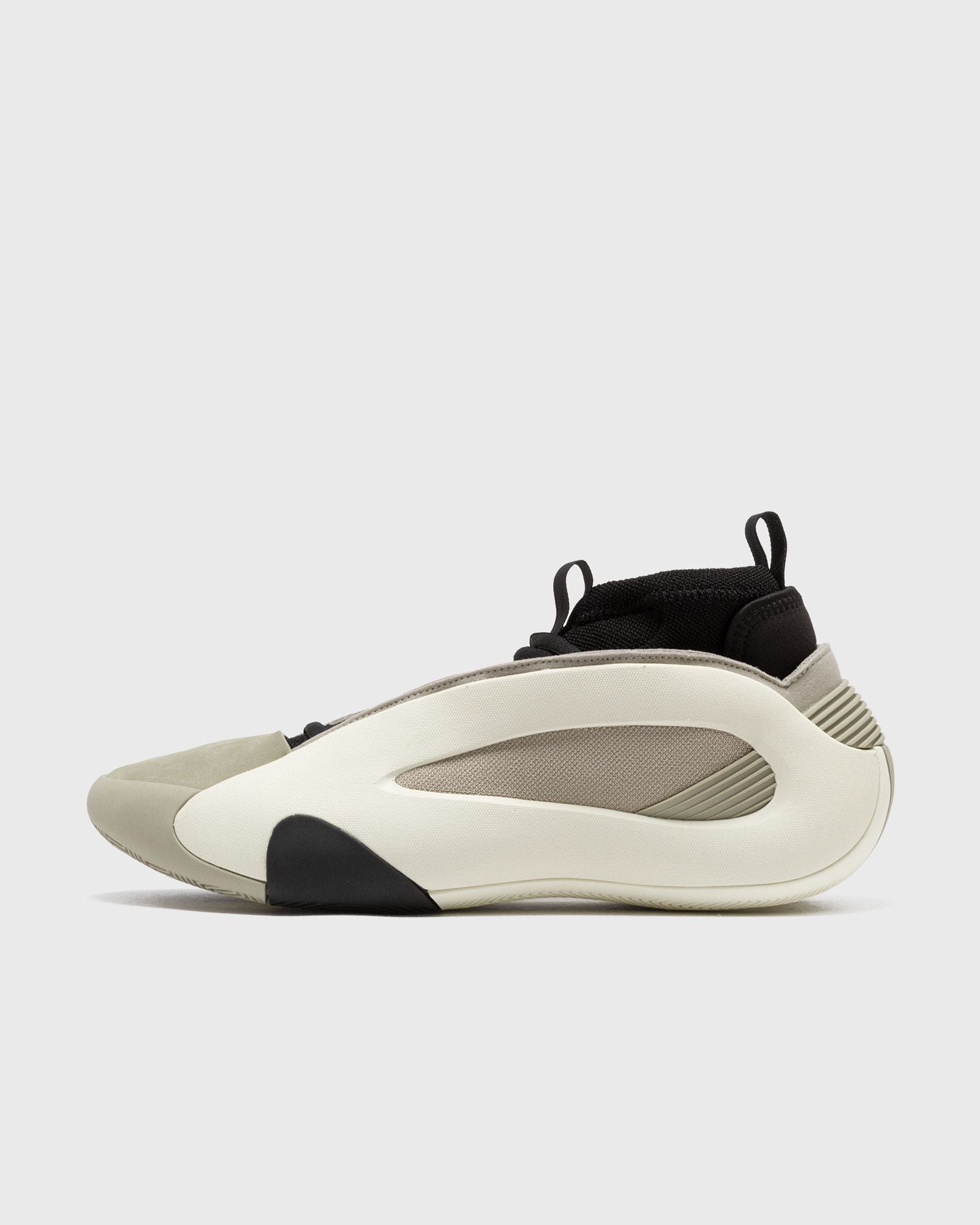 The new shoe from adidas Basketball and James Harden celebrates one of basketball's greatest scorers and personalities. The Harden Volume 8 has a sleek gray textile upper. It is complemented by a stretchy, sock-like cuff and a synthetic leather toe cap. The EVA cage in ivory provides improved lateral support and the teardrop-shaped frame merges into a full-length Jet Boost midsole. The rubber outsole with JH traction pattern with herringbone tread provides excellent grip and rounds off the design.