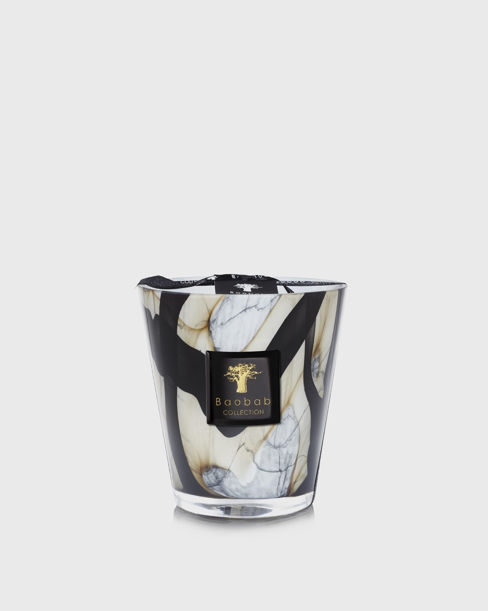 The Baobab Max 16 Stones Marble scented candle is set in a mouth-blown glass with a gray marble design with black lines and a beige rim. The elegance of the glass reveals the flame, giving the appearance of a luminous stone object. The quality of Baobab scented candles requires a specific burning procedure. Each time the candle is burned, it is necessary to wait until the entire surface of the candle has liquefied before extinguishing it. This prevents the formation of craters, which look unattractive and make burning more difficult. The first burning of the candle always takes longer than the subsequent times. Wait until the first layer of wax has completely liquefied. The duration of this phase depends on the size of the candle. - Fragrance notes: Leather, rose, plum - Height: 16cm - 4 wicks - Weight: 2.3kg