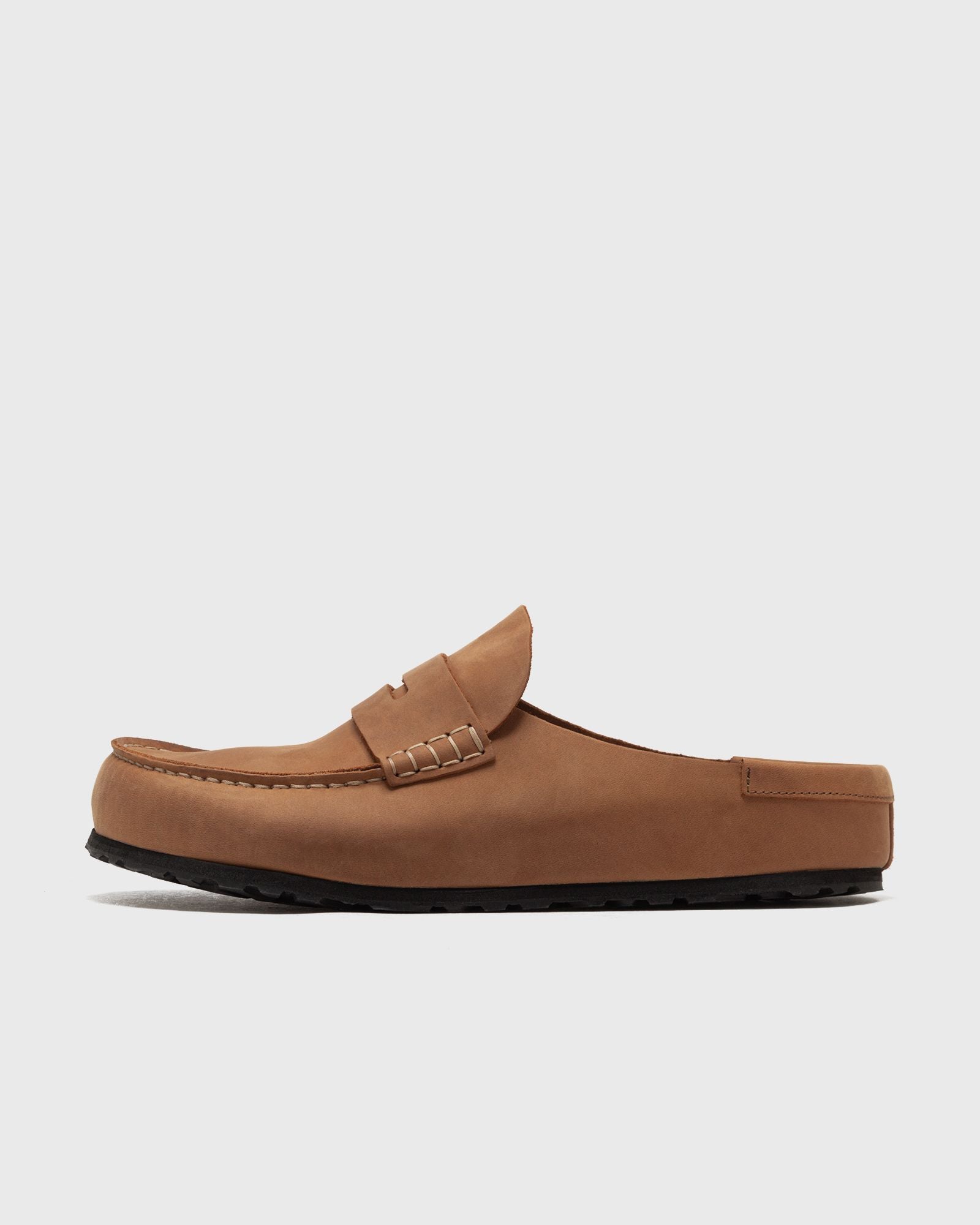 The Birkenstock Naples is a half-open moccasin-style clog with eye-catching stitching. The sole consists of a cushioning EVA midsole and a genuine rubber outsole, ensuring a secure and comfortable stance thanks to these two components. The upper material is made from particularly thick, oiled nubuck leather with an open-edged finish. - Anatomically shaped cork-latex footbed - Upper material: oiled nubuck leather - Insole: suede - Sole: rubber EVA sole - Details: moccasin style with eye-catching stitching - Made in Germany footbed