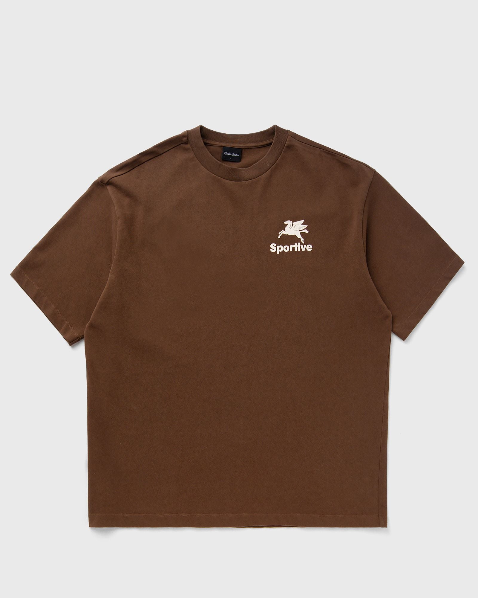 The CHOCOLATE PEGASUS Tee from Goodies Sportive offers the perfect symbiosis of style and comfort. The soft, breathable cotton fabric ensures optimum freedom of movement and a comfortable feel, while the Pegasus logo on the front and back rounds off the sporty design. - Ribbed crew neck - Short sleeves - Printed logos on the front and back - Made in Portugal