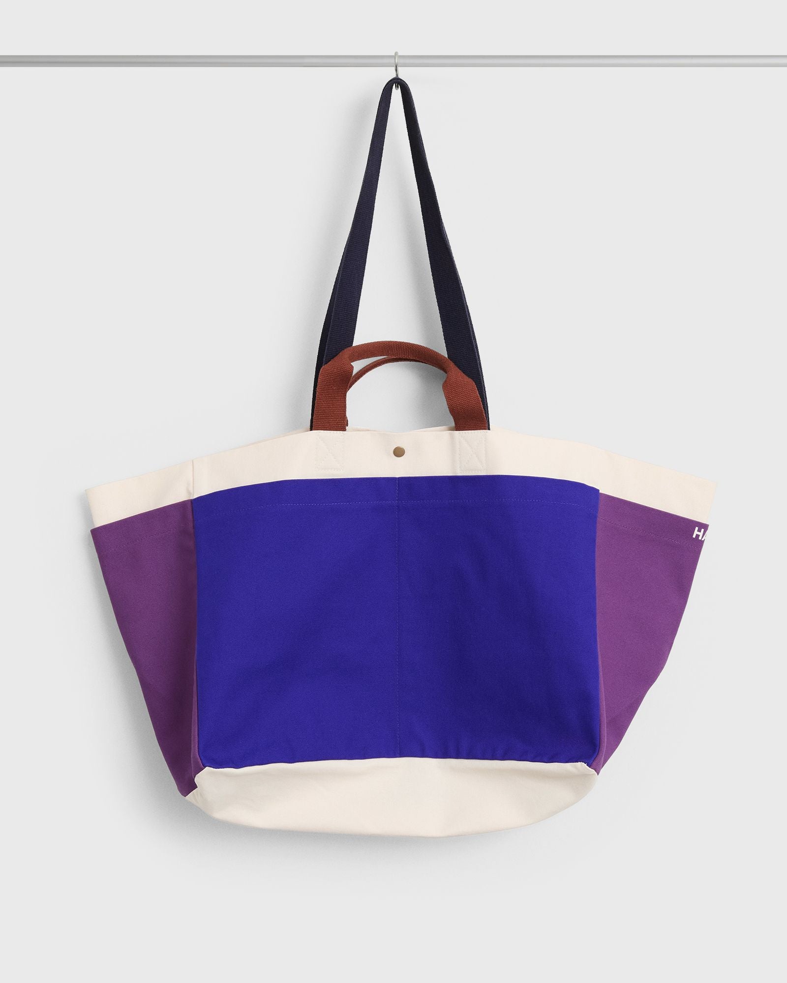 The HAY Weekend Bag is a spacious, multifunctional bag with a contrasting HAY logo that is not only suitable for weekend trips. The versatile bag is made of thick and durable organic cotton and has two handles. - Dimensions: 38cm x 53cm x 37cm