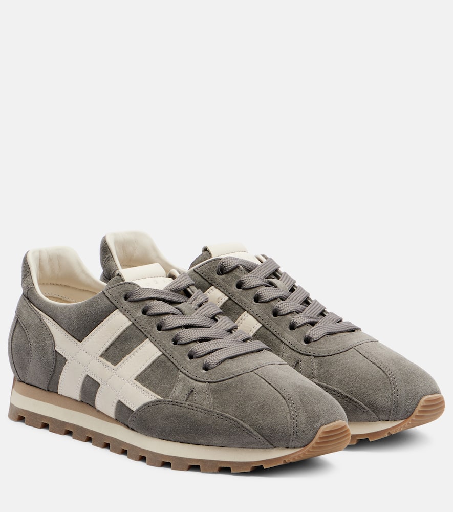 The Hogan 86er suede sneakers is expertly crafted using upper: leather (suede). lining: leather, fabric. sole: leather insole, rubber sole. toe shape: almond toe. made in italy. includes: extra laces, dust bag, shoe box. designer color name: b804+b002+b013. item color: gray. — ensuring durability and an unmistakable touch of elegance. Its meticulous construction speaks to Hogan’s dedication to quality and distinctive design.