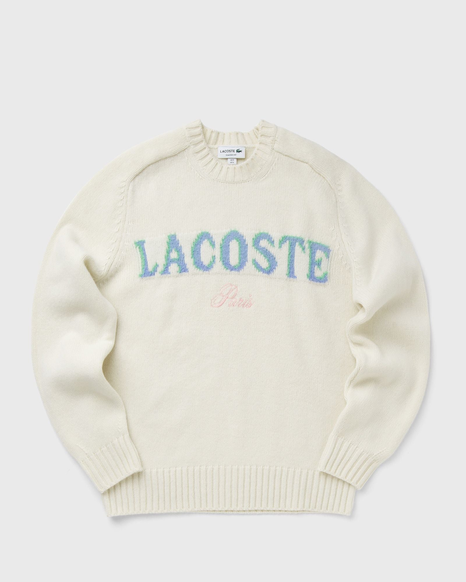 The Lacoste sweater embodies casual elegance at its finest. Made from soft, comfortable wool, it features a striking intarsia motif in fluffy wool that creates a unique textured effect. - Wool, animal-friendly origin - Classic fit, comfortable sleeves - Wide 5-gauge knit - Intarsia knit with embroidered Lacoste branding Paris on the chest - Ribbed knit at the neck, cuffs, and hem - Color-coordinated embroidered crocodile at hip height