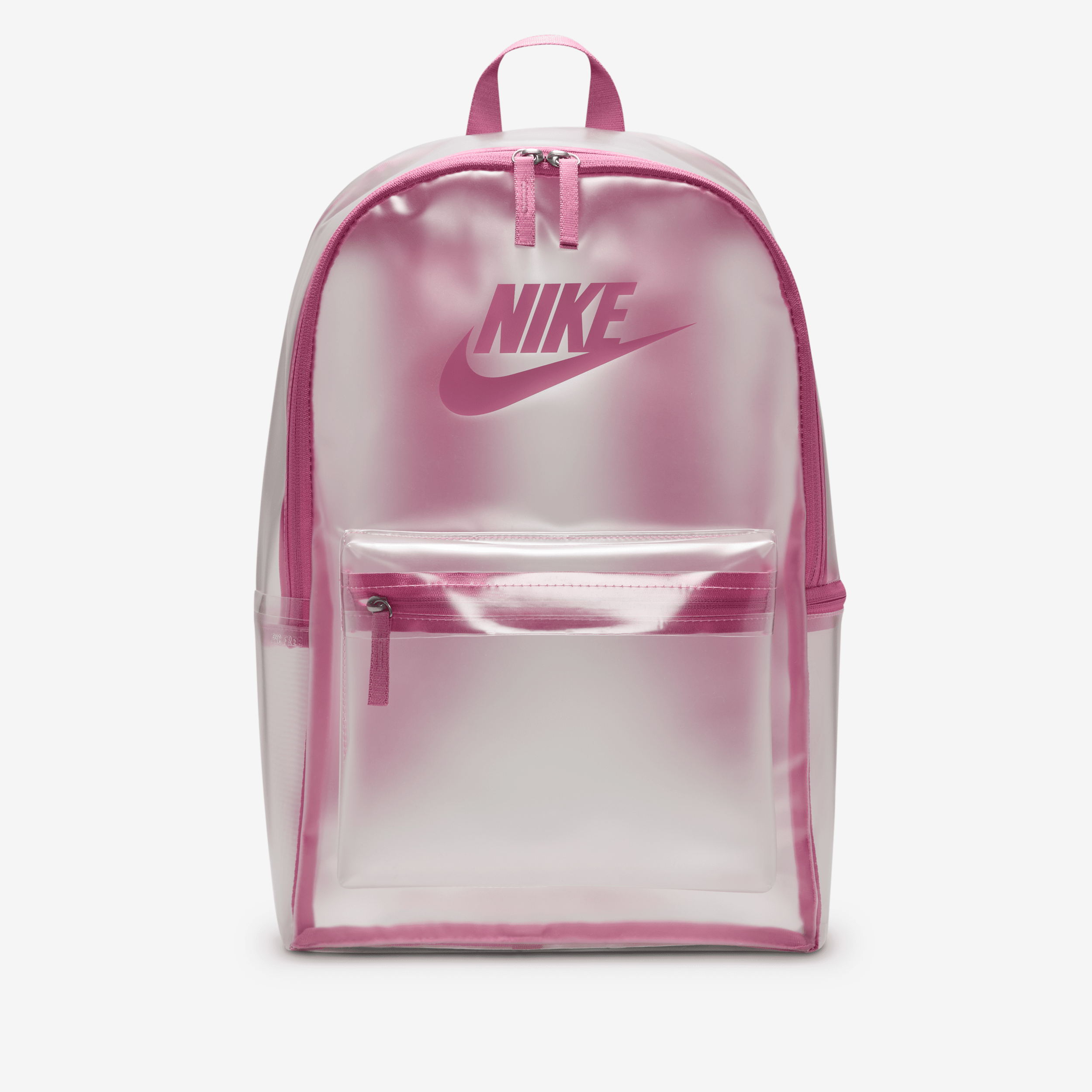 La opción perfecta para ser tu próxima mochila. Esta mochila tiene compartimentos con cierre para organizar tus cosas y bolsillos laterales para tener a la mano los objetos pequeños. [] [] ["Datos del producto: 30 x 43 x 15 cm (ancho x alto x profundidad). Correas para los hombros acolchadas. 71% poliuretano termoplástico (TPU), 29% poliéster. Limpiar solo las manchas. Producto importado"] Style: HV8920; Color: Transparente/Flamenco mágico/Flamenco mágico; Size: TALLA ÚNICA; Age Group: Adult | Nike Heritage Crystal
