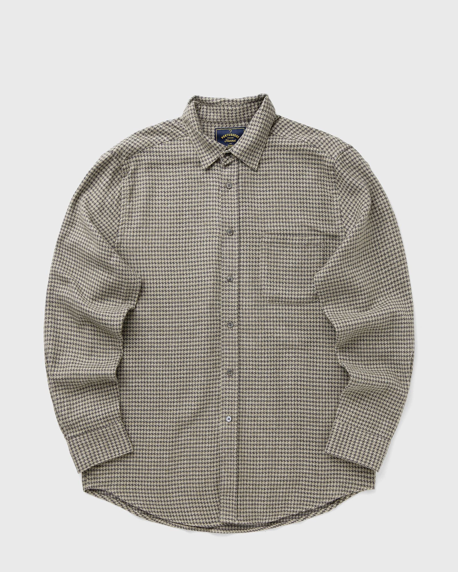 The Portuguese Flannel Abstract Pied Poule Shirt combines classic houndstooth with modern casualness. Made from 100% high-quality cotton, it features a regular fit, fine mother-of-pearl buttons, and a striking texture. - Button placket - Chest pockets - Buttoned cuffs