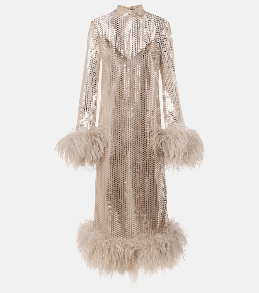 Taller Marmo Gina Venti feather-trimmed midi dress