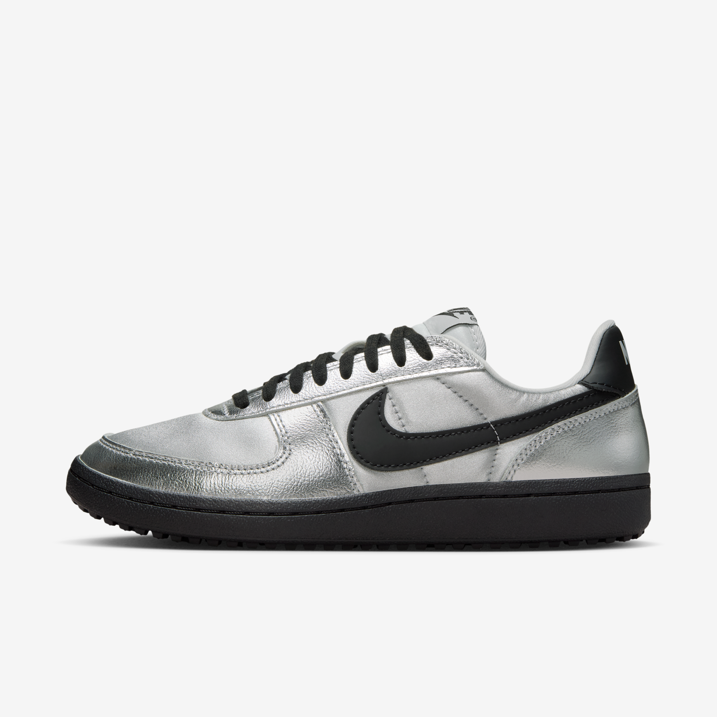 Los Field General emergen de sus raíces en el fútbol americano con carácter para sacudir el escenario de los tenis. Combina un acabado metalizado con una suela tipo waffle nudosa para crear un look vintage de campo de fútbol americano. ["Beneficios: La parte superior de cuero auténtico y sintético crea un look retro diseñado para durar. La suela tipo waffle les da mucho agarre y la suela cupsole con pespunte completo mejora la durabilidad."] [] ["Datos del producto: Cuello acolchado. Entresuela de espuma. Suela de goma"] Style: HQ7397; Color: Plata metalizado/Polvo fotón/Blanco/Negro; Size: 9.5; Age Group: Adult | Nike Field General