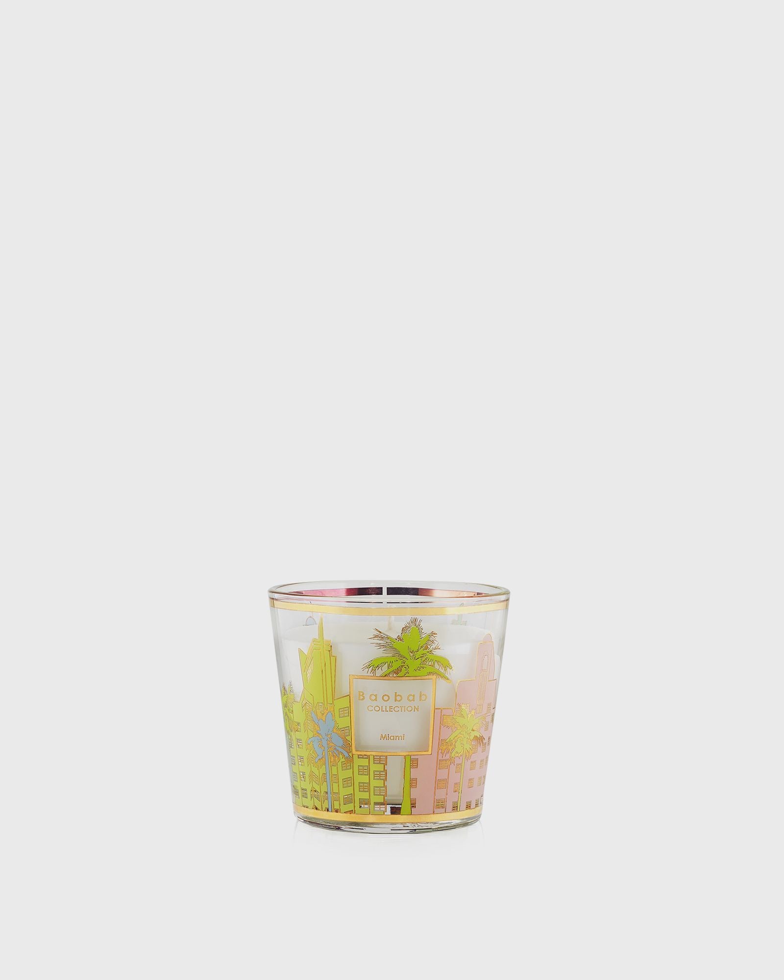 The My First Baobab Miami scented candle is decorated with a motif in gold and pastel tones, reminiscent of the Art Deco architecture of the buildings on South Beach. The quality of Baobab scented candles requires a specific burning procedure. Each time the candle is burned, it is necessary to wait until the entire surface of the candle has liquefied before extinguishing it. This prevents the formation of craters, which look unattractive and make burning more difficult. The first burning of the candle always takes longer than the subsequent times. Wait until the first layer of wax has completely liquefied. The duration of this phase depends on the size of the candle. - Fragrance notes: Hand-scooped sea salt, maritime pine, cypress - 190g