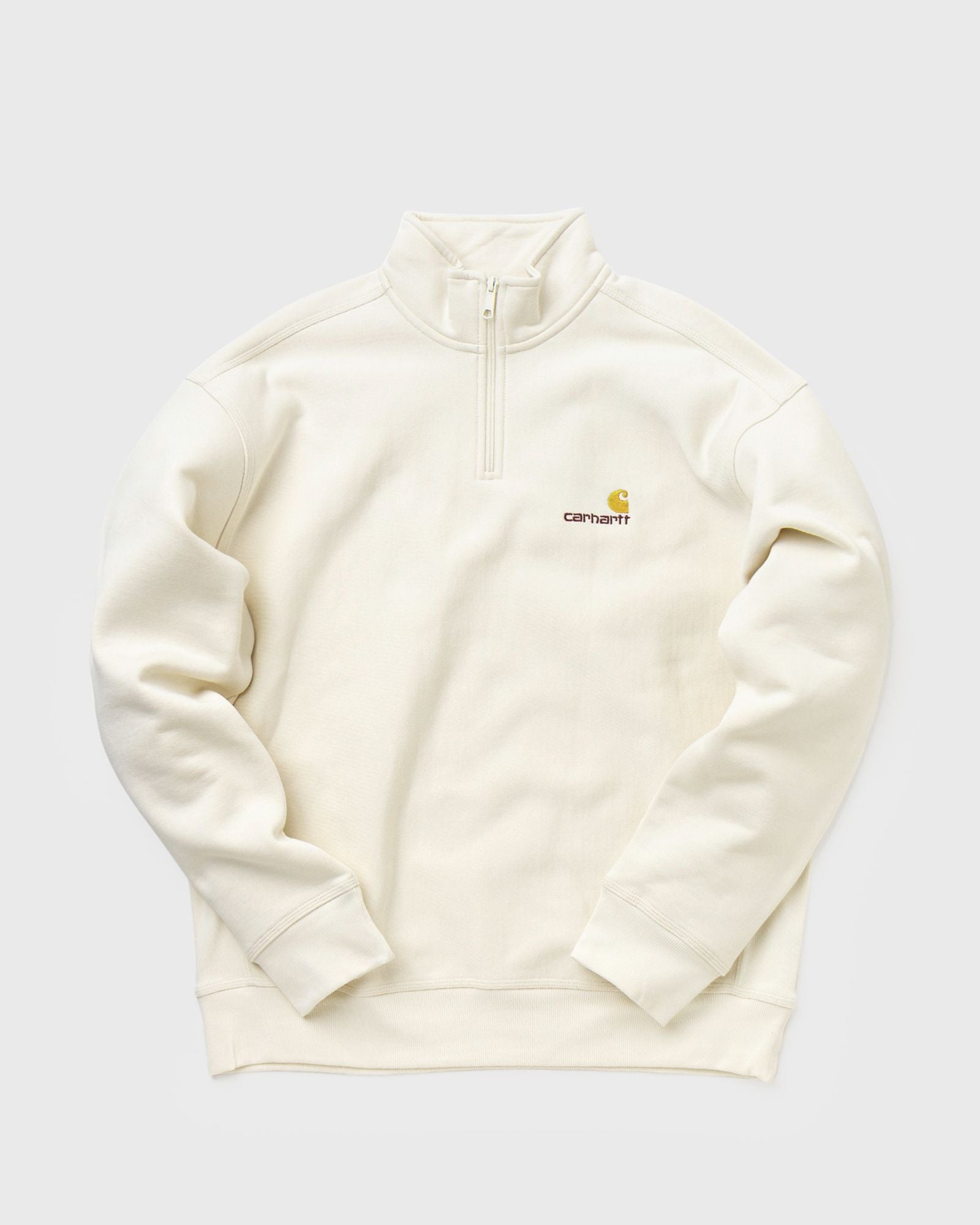 The Carhartt WIP Half Zip American Script Sweat Half-Zips is now officially available in beige at BSTN.com.