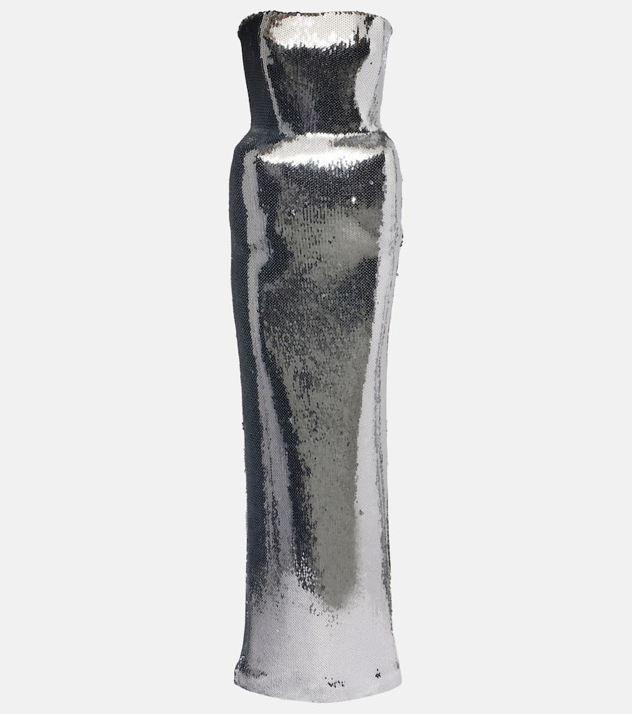 A standout choice for those seeking versatile wardrobe piece, the David Koma Padded sequined bustier gown captures the signature appeal of David Koma.