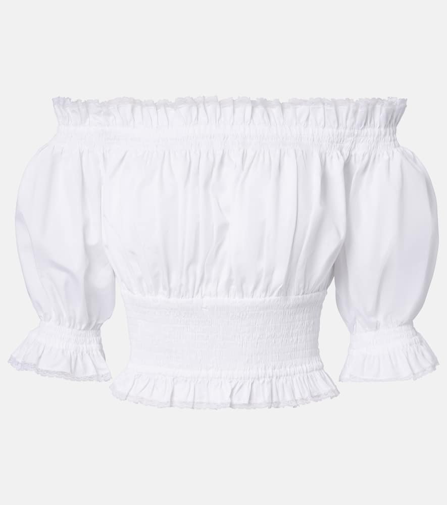 Dolce & Gabbana Off-shoulder cotton-blend poplin crop top