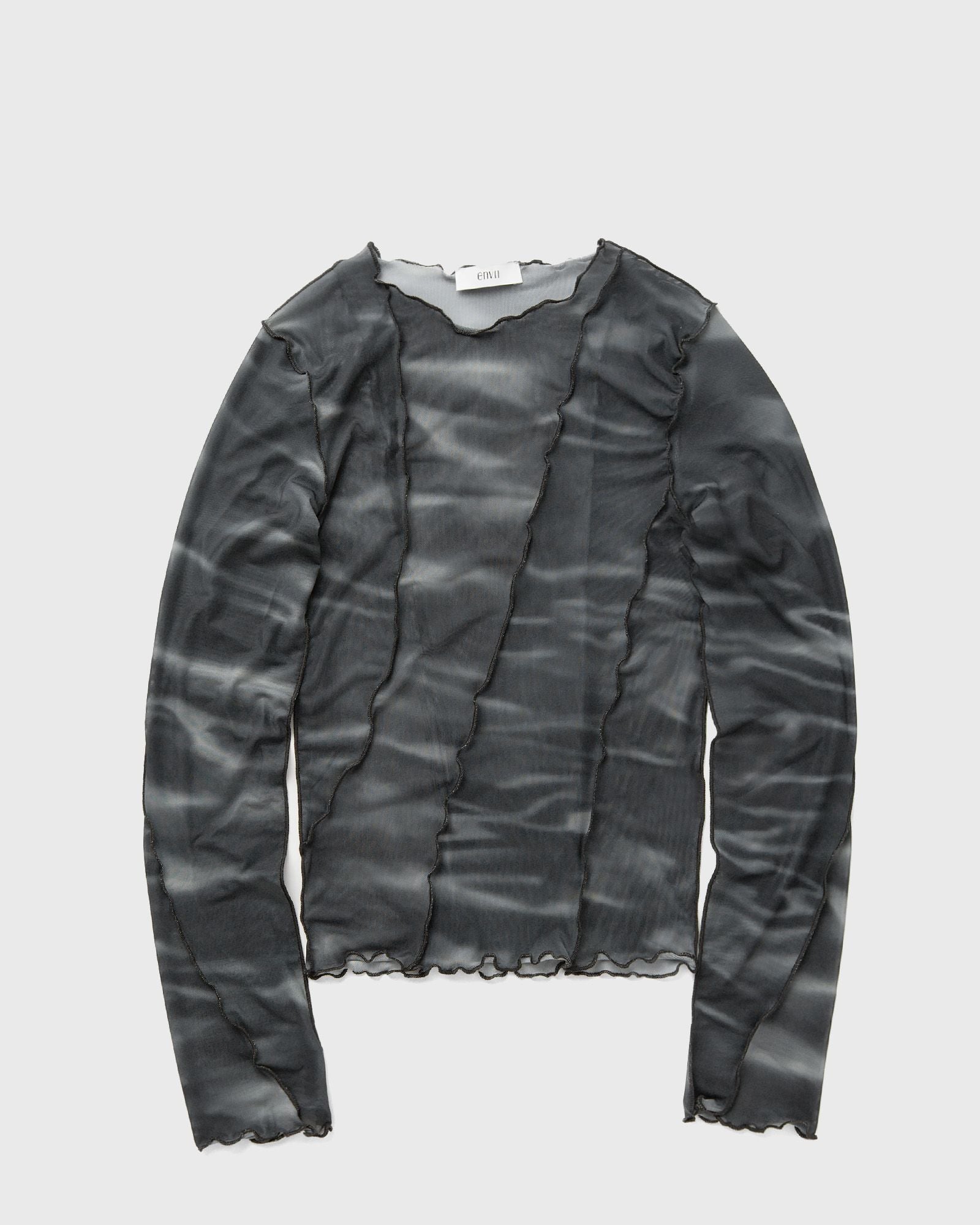 The Envii ENHAGO LS TEE AOP 7042 is made from transparent and stretchy mesh with an all-over pattern. The slim-fit top has a round neckline and long sleeves. - Diagonal, wavy seam details - Wavy edge at the neck, cuffs and bottom hem - Slim fit