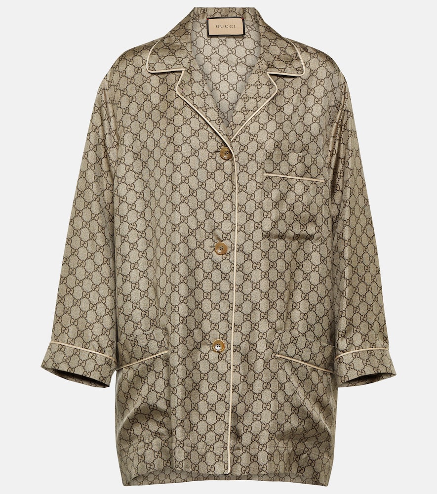 Experience the exceptional quality of the Gucci GG Supreme oversized silk shirt by Gucci. This piece embodies timeless sophistication and exceptional craftsmanship, blending premium materials with modern appeal. Each element reflects luxury, comfort, and style, making it an essential addition to any refined wardrobe.