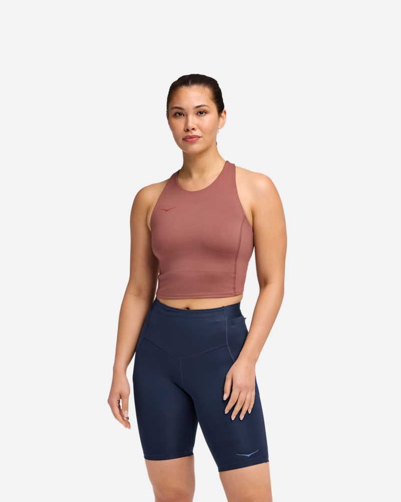 The HOKA Elaro Crop Bra Rouge combine premium materials with a refined, street-ready design, delivering a modern everyday look inspired by HOKA’s performance heritage.