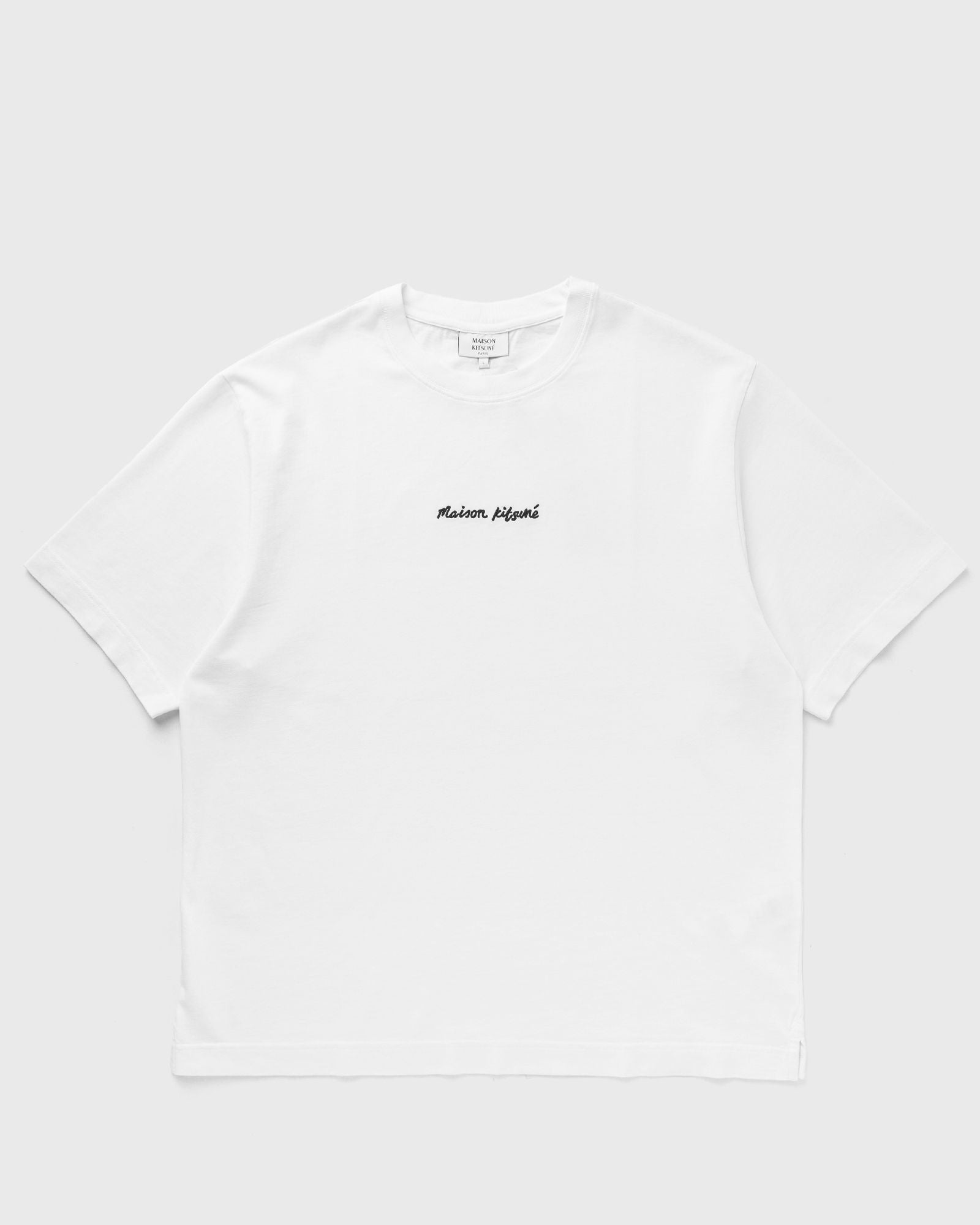 The EMBROIDERY OVERSIZE TEE by Maison Kitsun is a short-sleeved cotton T-shirt with an oversized cut and embroidered Maison Kitsun handwriting signature. - T-shirt made from pure cotton - Oversized cut - Rib-knit trim on the crew neck - Embroidered Maison Kitsun lettering on the front