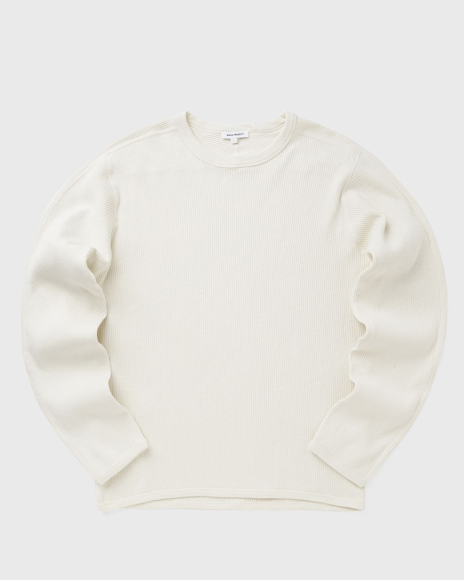 The Eske Military Rib LS T-Shirt by Norse Projects combines minimalist design with functional sophistication. Inspired by classic military thermals, this long-sleeved shirt is made from heavy 440 GSM cotton rib jersey with 2% elastane for comfortable elasticity. The relaxed cut ensures a casual fit, while ergonomic dividing seams and flatlock seams provide high wearing comfort and freedom of movement. - Ribbed collar and cuffs - Movement-friendly inserts - Flatlock seams - Loose fit