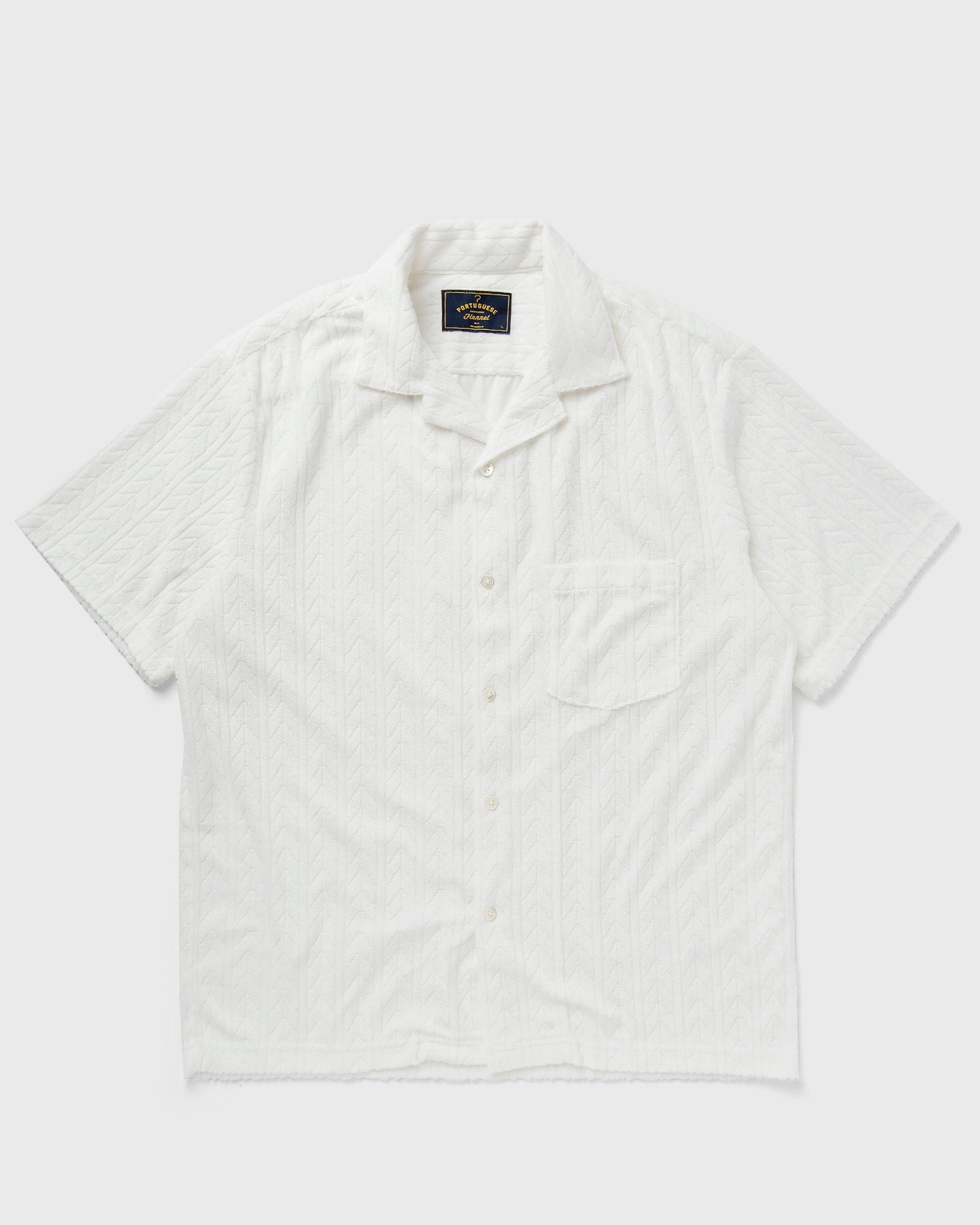 The BEACH CLUB shirt by Portuguese Flannel is made from a soft, textured fabric. The shirt has short sleeves and a full-length button placket. - Full-length button placket - Chest pocket
