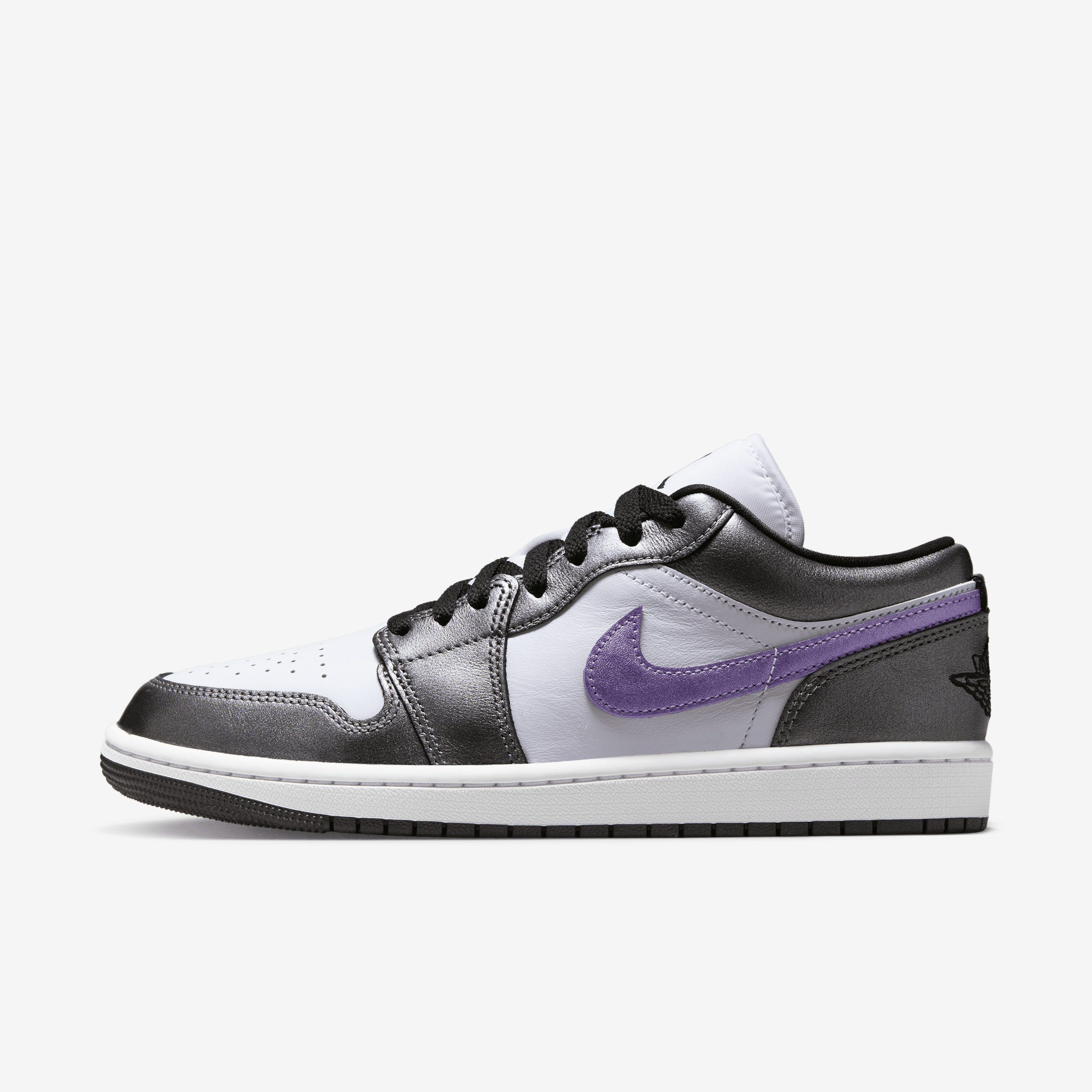 Añade algo de brillo innegable a tu estilo de por sí impecable con estos AJ1 de edición especial. Los revestimientos de cuero les dan un look que realmente destaca. ["Beneficios: El cuero auténtico en la parte superior ofrece durabilidad, estructura y una sensación de calidad premium. La tecnología Nike Air absorbe el impacto para brindar amortiguación en cada paso. La goma en la suela proporciona tracción duradera."] [] ["Datos del producto: Logotipo Wings en el talón. Jumpman en la lengüeta"] Style: HJ5910; Color: Blanco/Negro/Hielo uva; Size: 9.5; Age Group: Adult | Air Jordan 1 Low SE