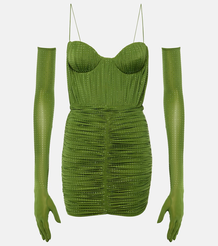 Alex Perry Embellished ruched jersey minidress