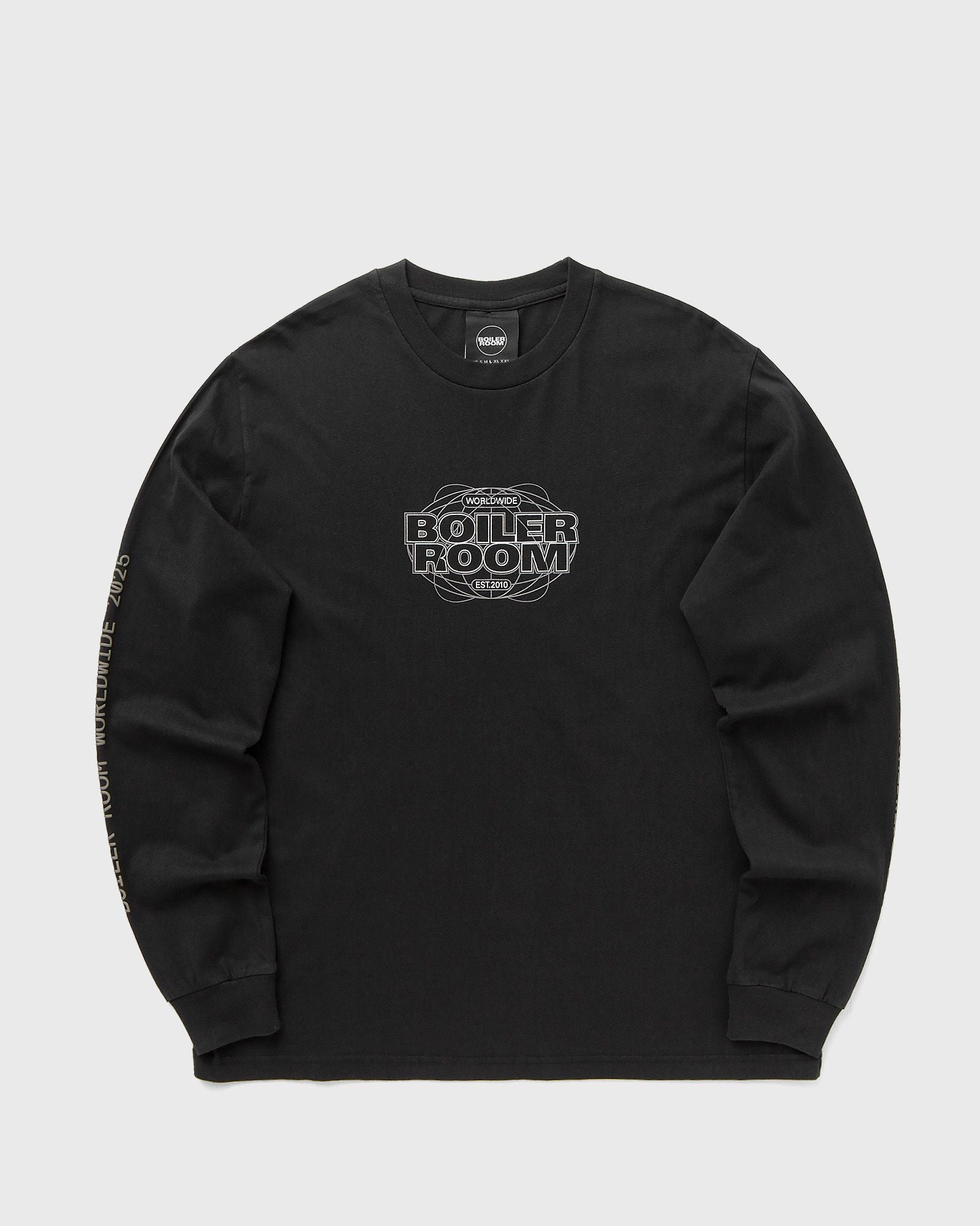 The Boiler Room WORLD TOUR LS TEE features a graphic print on the front. The back shows the global reach of Boiler Room events from So Paulo to Tokyo. - Crew neck - Long sleeves - Printed branding