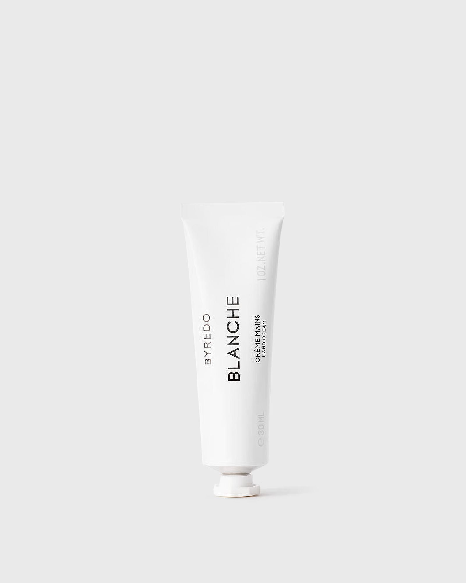 Byredo Blanche Hand Cream is a nourishing cream for on the go that intensively cares for, soothes, and softens your hands, enveloping them in an exquisite signature fragrance. The fragrance opens with an invigorating hint of aldehyde and the delicate grace of Centifolia rose, reminiscent of the pleasant smell of freshly washed linen. In the heart note, delicate peony and violet unfold, adding a soft floral nuance. A warm base note of creamy sandalwood and velvety musk spreads out, reflecting the soothing touch of a fresh white shirt on the skin. - Floral - Recyclable packaging - Rich texture - 20% shea butter - Aluminum tube - 30ml