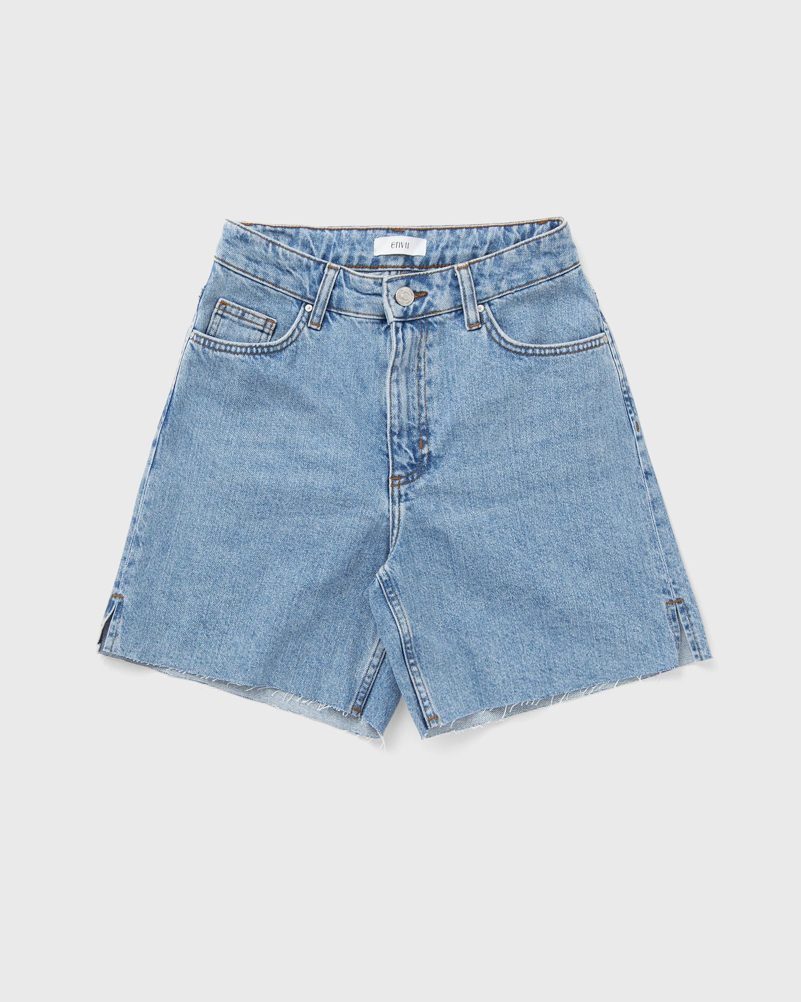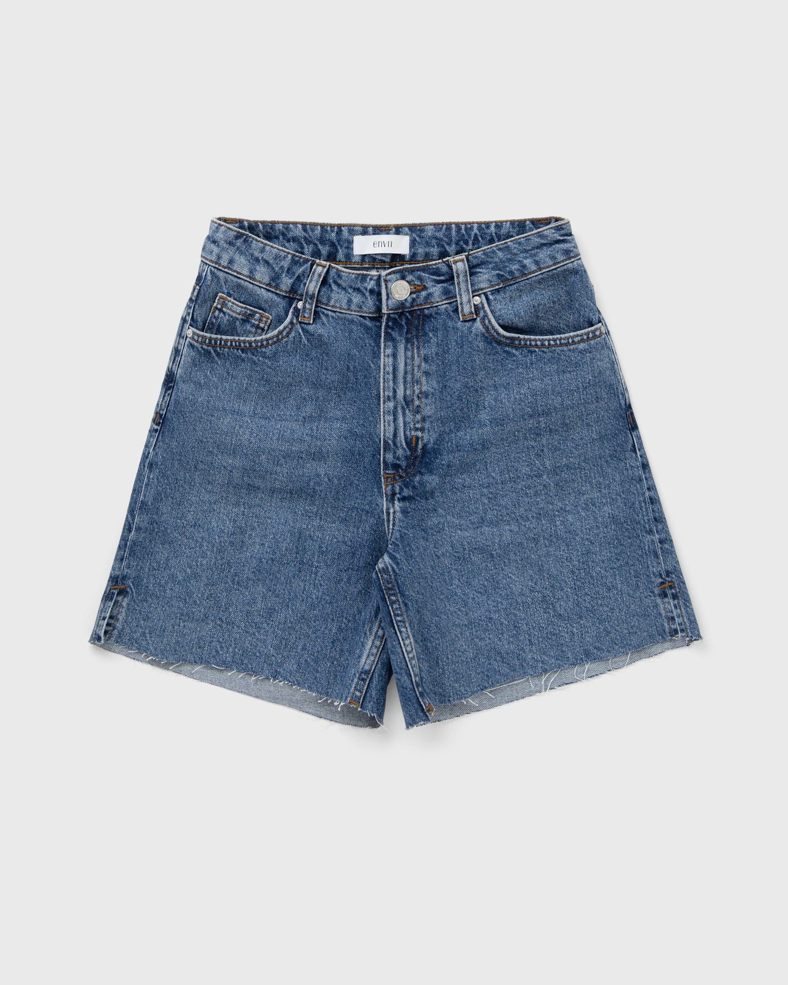 The Envii ENBILOBA SHORTS 7215 are made from recycled cotton and organic cotton with a vintage wash. The long, cropped silhouette has a classic five-pocket style with contrasting stitching. - Uncut hem and slits at the sides - Branded button and studs - Mid-rise waist with a loose fit and longer leg