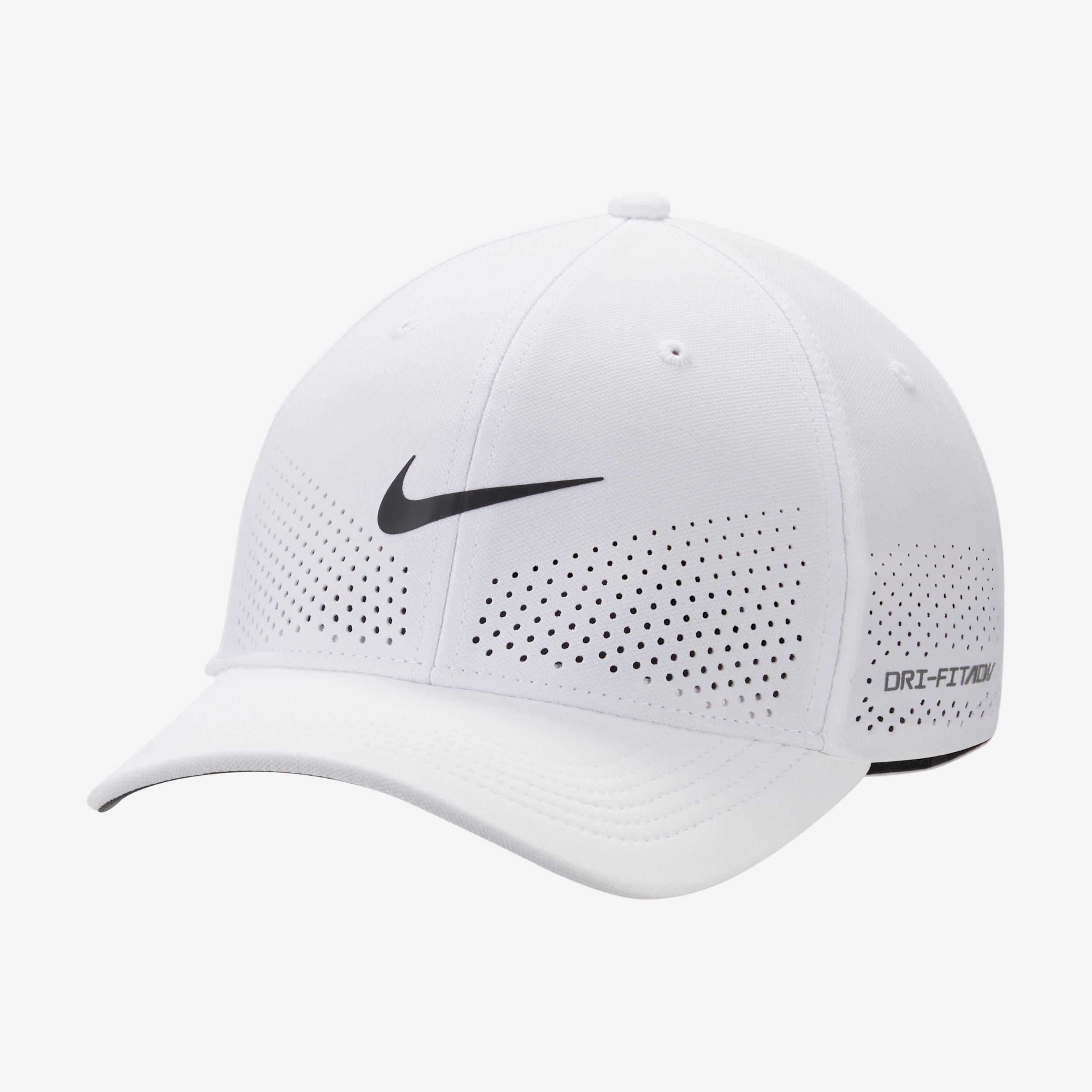 La Gorra SwooshFlex estructurada Nike Dri-FIT ADV Rise - Blanco ofrece frescura y comodidad para entrenamientos de alto rendimiento. Su tejido ligero y transpirable ayuda a mantenerte seco mientras te mueves con libertad.
