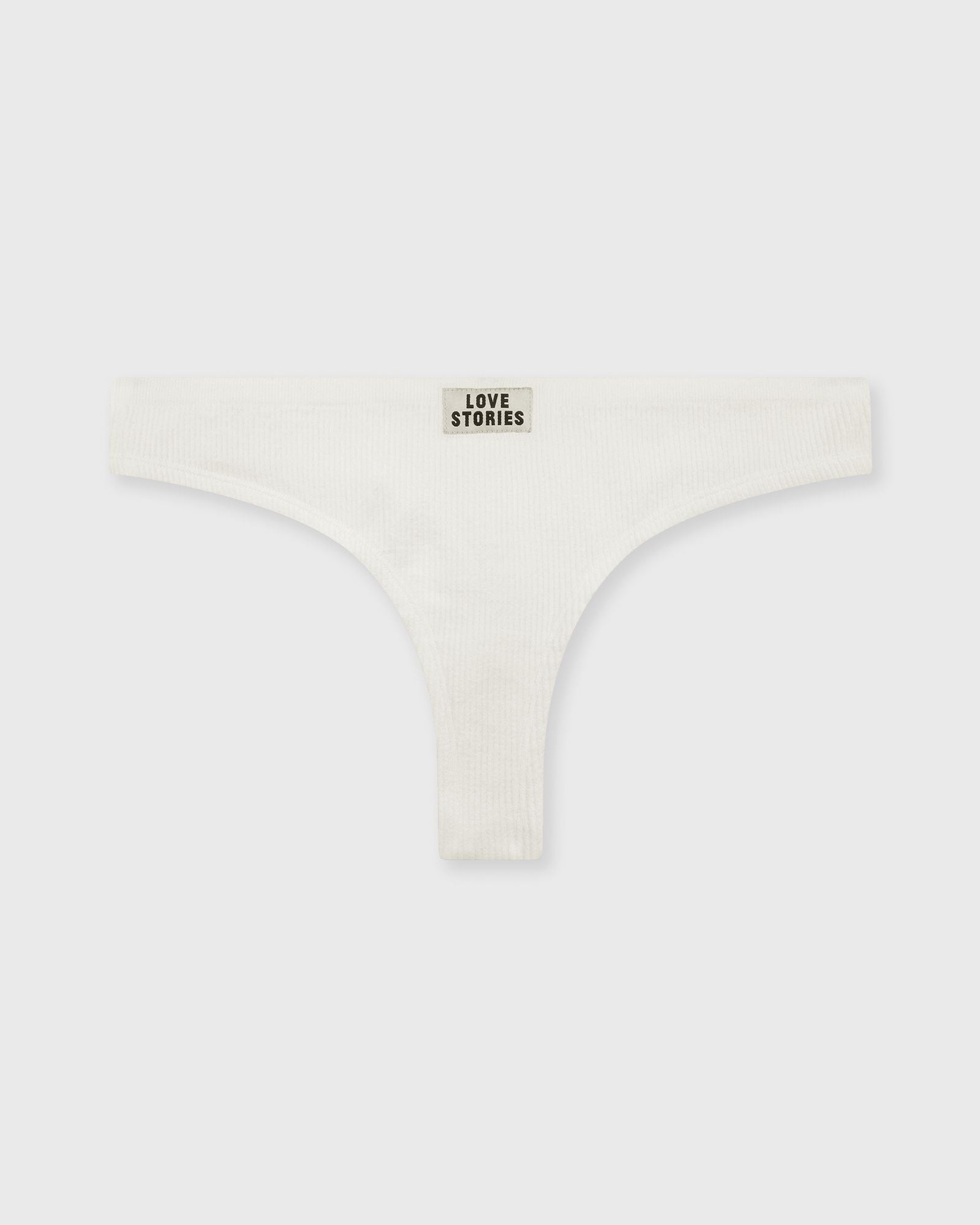 The Lima Thong by Love Stories Intimates is a knitted thong-style slip made from a soft cotton blend with stretch. - Fabric with ribbed texture - Same-colored waistband decorated with Love Stories logo label - Very discreet under tight-fitting clothing - Gusset lining made from 100% cotton, breathable and comfortable