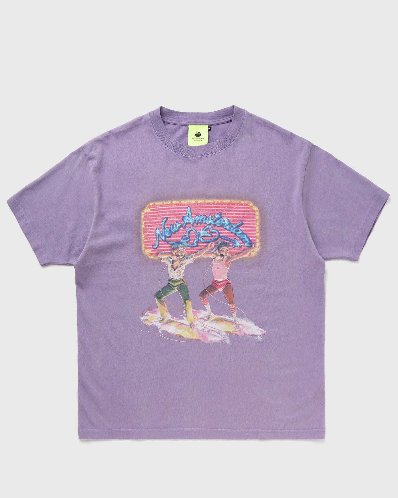 The New Amsterdam SURF DISCO TEE with crew neck is screen printed on the front with surf disco motifs. The T-shirt is made from 220 GSM yarn-dyed cotton with a snow-wash treatment. - Regular fit - Ribbed hem - Artwork on the front - Snow-wash treatment - 100% cotton, 220GMS