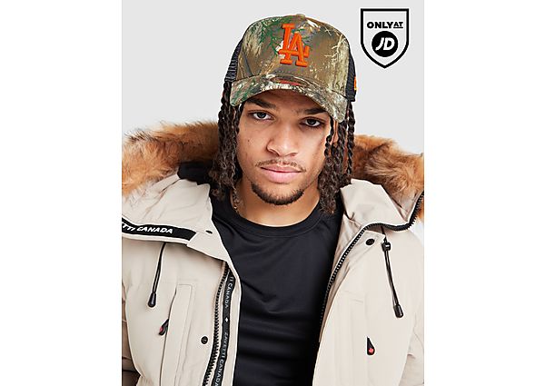 Call on camo with this MLB LA Dodgers 9FORTY Trucker Cap from New Era. Mesh panels to the sides and back pair with a cotton front and curved visor for a classic trucker look. The snapback fastening secures the fit. Exclusive to JD, it's finished off with an orange LA logo and New Era branding. Hand wash.