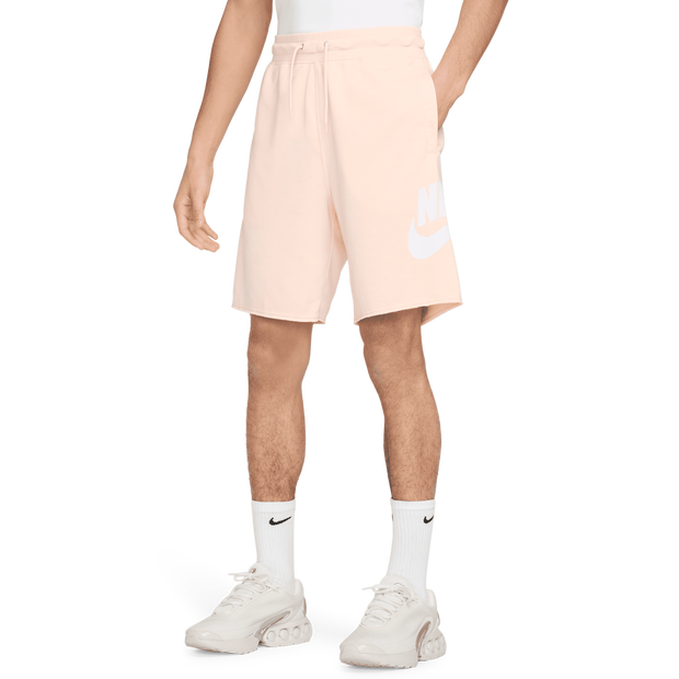 Built with the comfort of Nike Club, these French terry Alumni shorts have a casual cut that's relaxed through the seat and thighs. Benefits: This midweight French terry fabric (with unbrushed loops on the inside) gives structure, breathability and softness—so it's just as ready for the gym as it is for the sofa. A hidden press-stud closure on the back pockets helps keep your small items secure. Product details: Pockets. An elastic waistband with a round external drawcord. 58% cotton/23% rayon/19% polyester. Front pocket: 100% cotton; waistband: 49% rayon/47% cotton/4% elastane. Machine wash. Imported