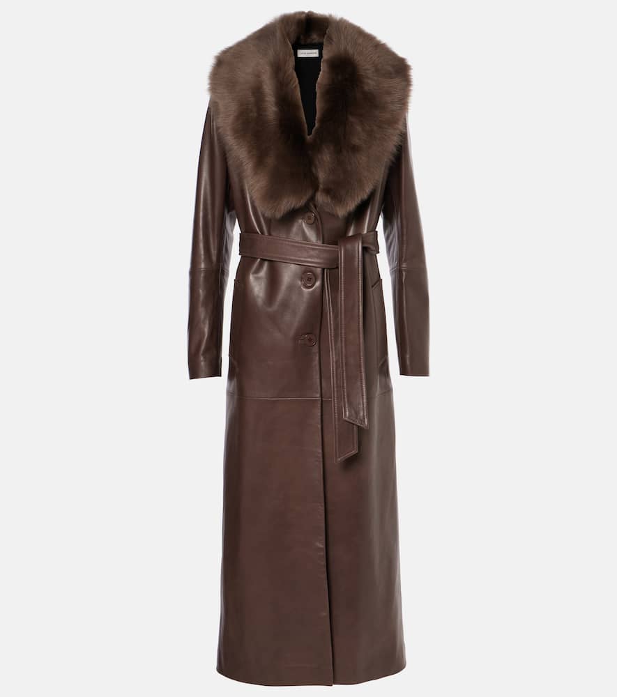 Nour Hammour Dakota shearling-trimmed leather trench coat