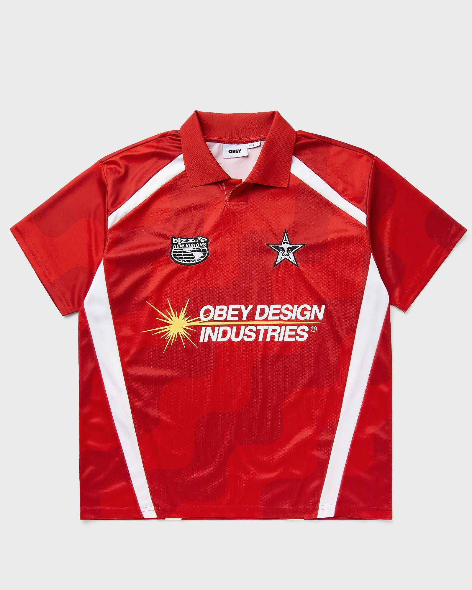 The SOCCER JERSEY from Obey brings sporty style to your looks. Made from lightweight, breathable material, it ensures optimum comfort, while eye-catching graphic elements and the classic soccer look round off the modern design. - All-over print - Contrasting style lines - Ribbed polo collar - Obey print and embroidery on the chest - Obey screen print on the back