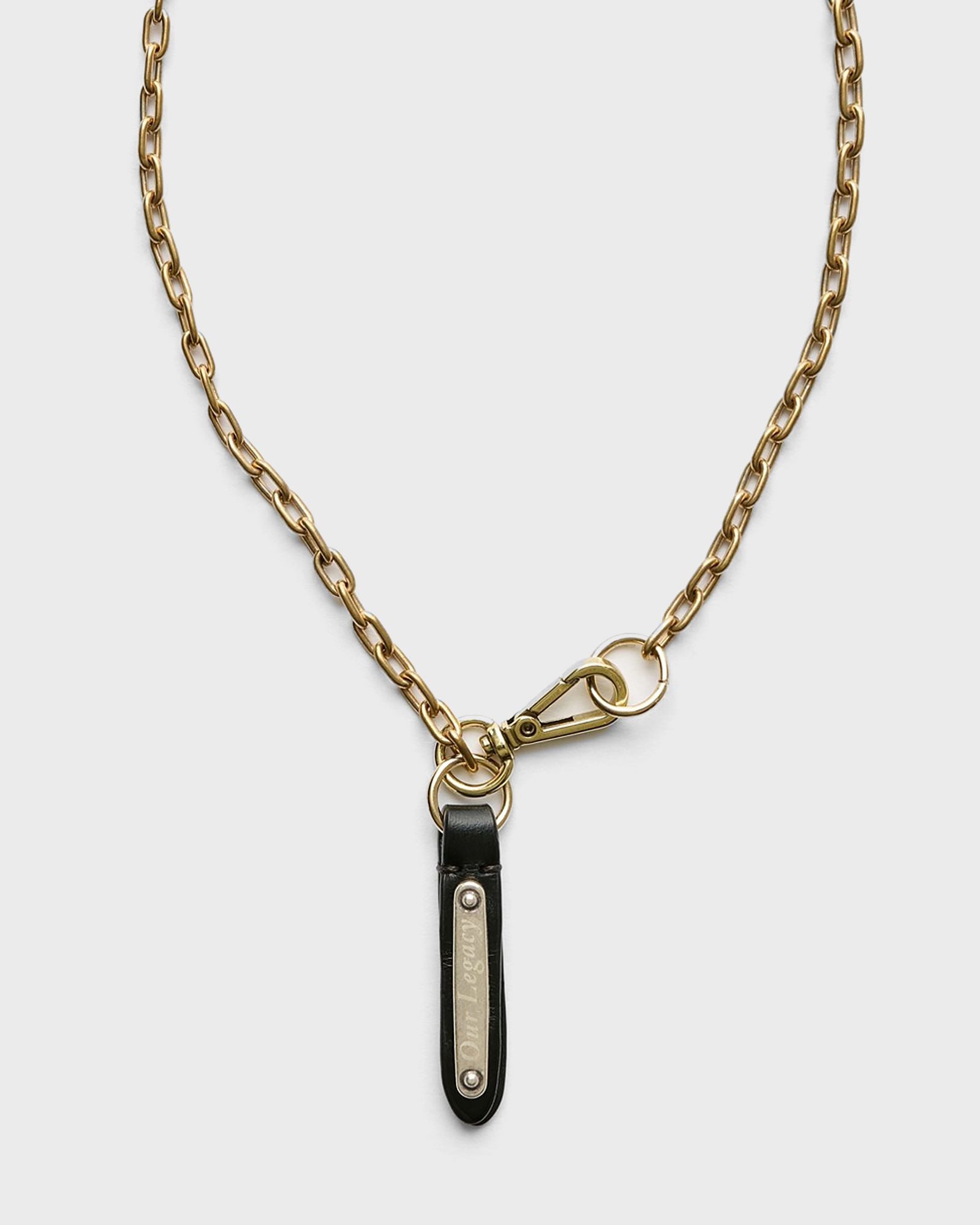The Delicate Ladon necklace by Our Legacy is made of gold-plated brass with a ring and clip closure. A hand-stitched leather tag with an engraved metal plate gives the piece that characteristic Our Legacy flair. - Length: approx. 40 cm - Made in Portugal - Fine link chain made of coated brass - Ring and clip closure - Leather tag with engraved metal plaque from Our Legacy