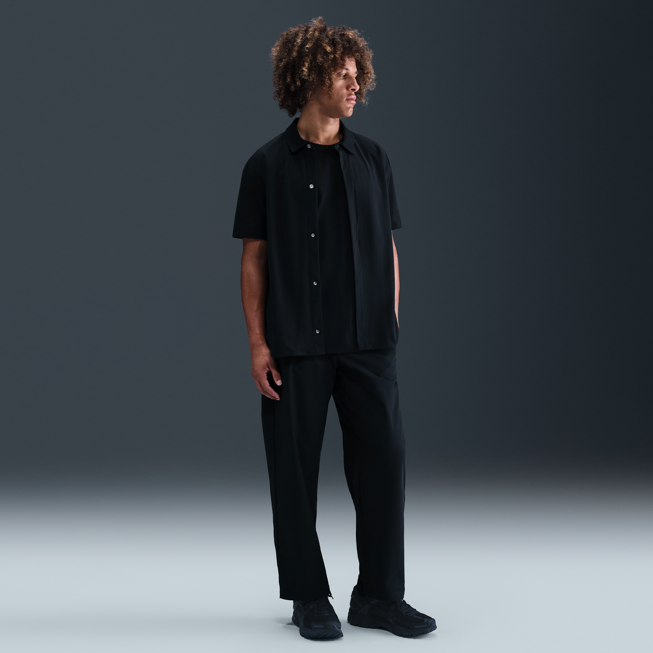 Diseñada para brindar comodidad durante todo el día, la tela PerfectStretch ofrece elasticidad en cuatro direcciones y un look impecable. En este pantalón chino de ajuste holgado se aprovecha al máximo el diseño, ya que cuenta con mucho espacio de almacenamiento y una presilla para colgarlo fácilmente. [] ["Más beneficios: La pretina elástica y las presillas para el cinturón brindan un ajuste seguro.. Los bolsillos posteriores cuentan con cierre.. Este producto ofrece protección UVA y UVB en las áreas del cuerpo que cubre la prenda. Para proteger las zonas expuestas, se recomienda utilizar protector solar de buena calidad."] ["Datos del producto: Cuenta con una presilla para colgar característica en la costura izquierda de la pretina. Presillas de cinturón adheridas. Cierre al frente con corchete. Cuerpo: 100% poliéster. Interior de los bolsillos: 86% poliéster, 14% spandex.. Lavar a máquina. Producto importado"] Style: HQ6941; Color: Negro/Gris humo oscuro; Size: 30/30; Age Group: Adult | Nike 24.7 PerfectStretch