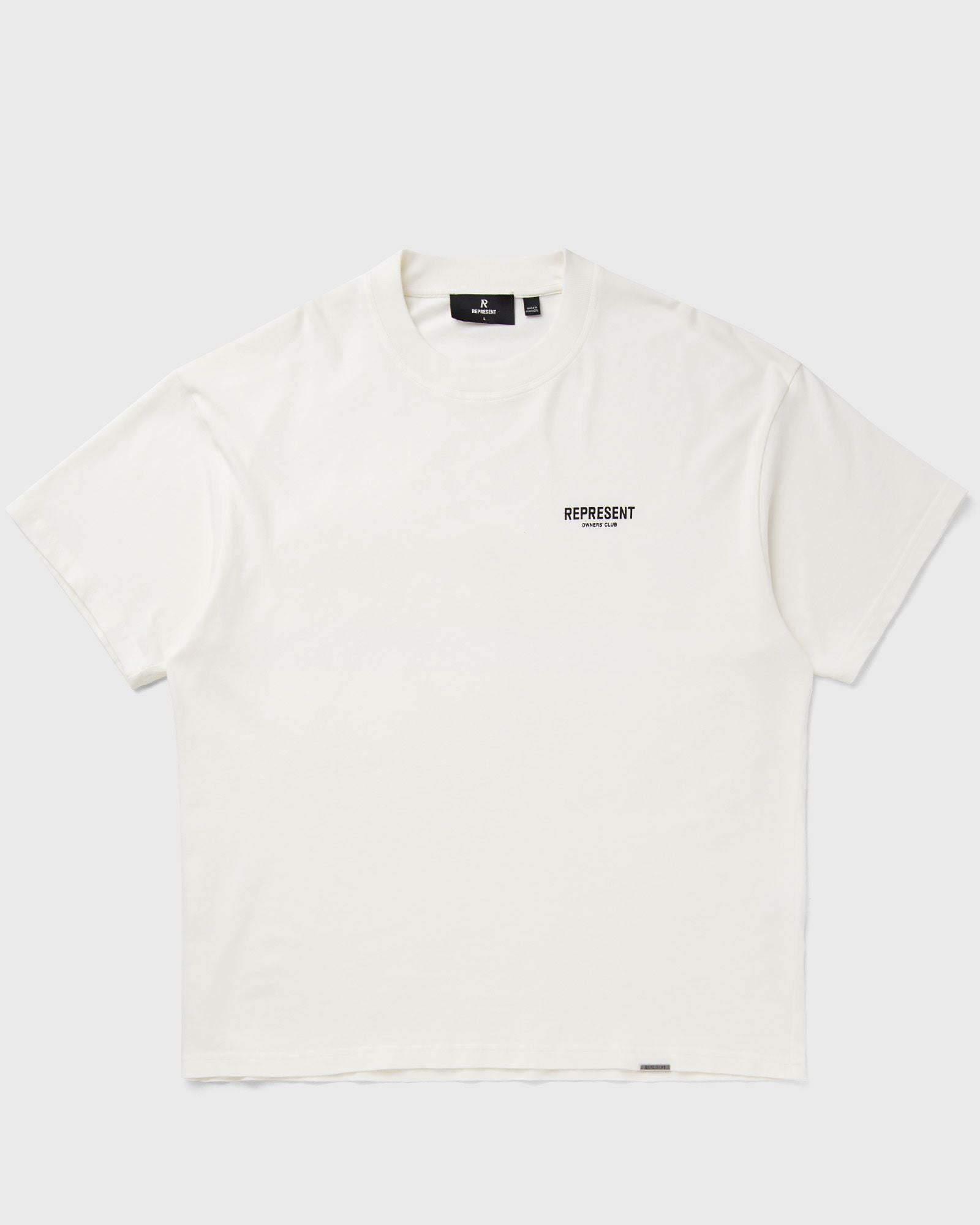 The Represent Owners Club Tee is a short sleeve jersey shirt in medium weight cotton. It comes in a slightly oversized fit with a ribbed crewneck collar. A Represent Owners Club graphic branding on the chest and on the back rounds out the design. - Oversized Fit - Ribbed crewneck collar - Branding on the chest and back