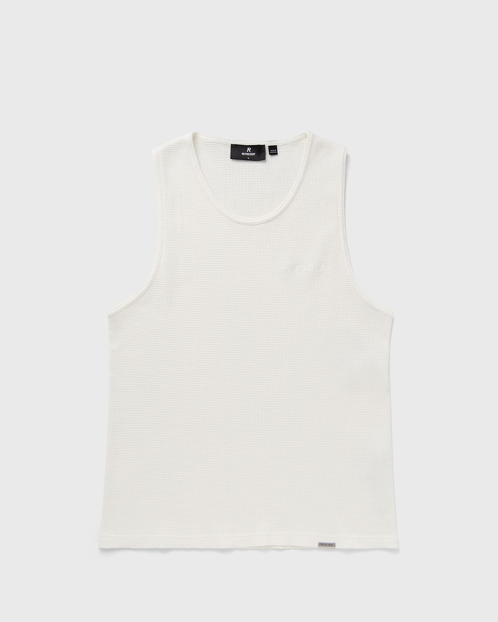 The Represent Waffle Vest is a sophisticated basic made from a soft cotton blend with a premium interlock waffle fabric for texture and durability. The crew neck tank is finished with a Represent logo metal tab for a subtle branded finish. - Crew neck - Represent logo metal tab - Interlock waffle texture
