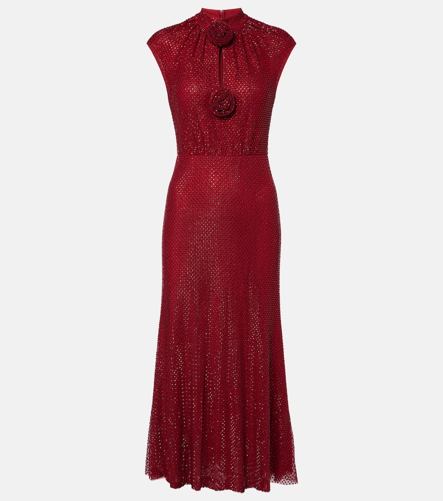 Self-Portrait Embellished fishnet midi dress