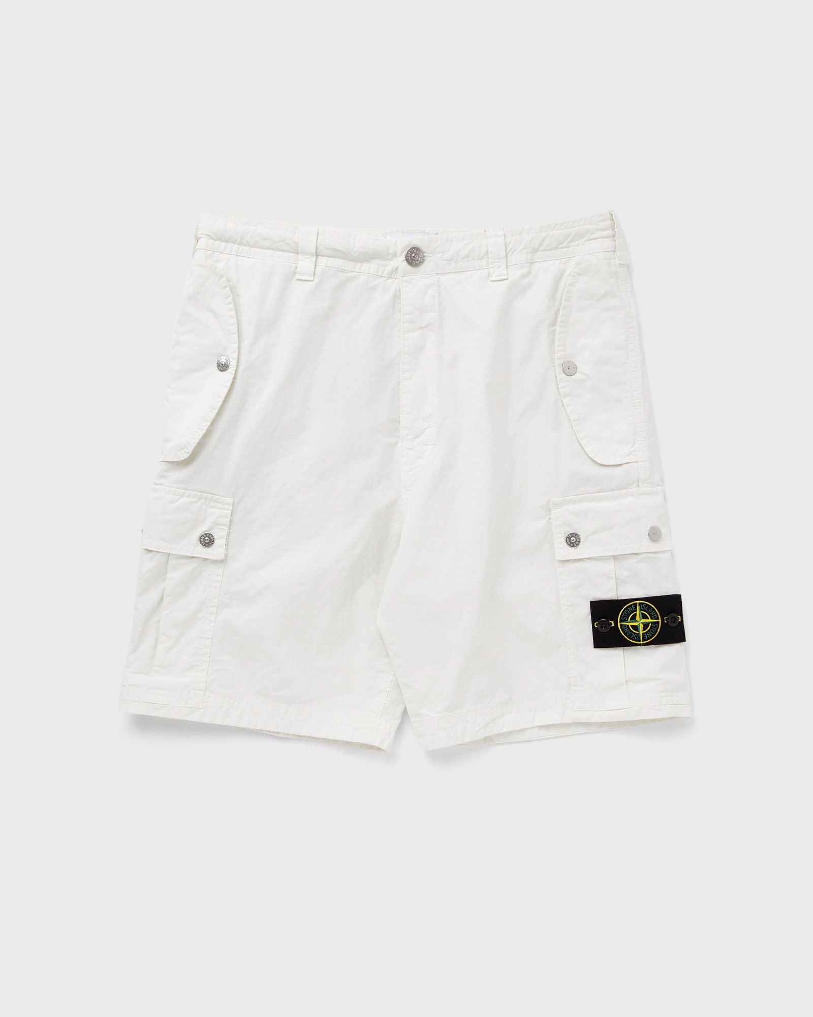 The Stone Island cargo shorts are made from ripstop cotton with a comfortable stretch component and feature multiple pockets and a drawstring waistband. A signature Stone Island badge completes the design. - Vertical side pockets with flap and press stud fastening - Two back pockets with flap and press stud fastening - One bellows pocket on the legs with flap and fastening with three press studs - Stone Island badge - Waistband with internal drawstring - Fly with zipper and button