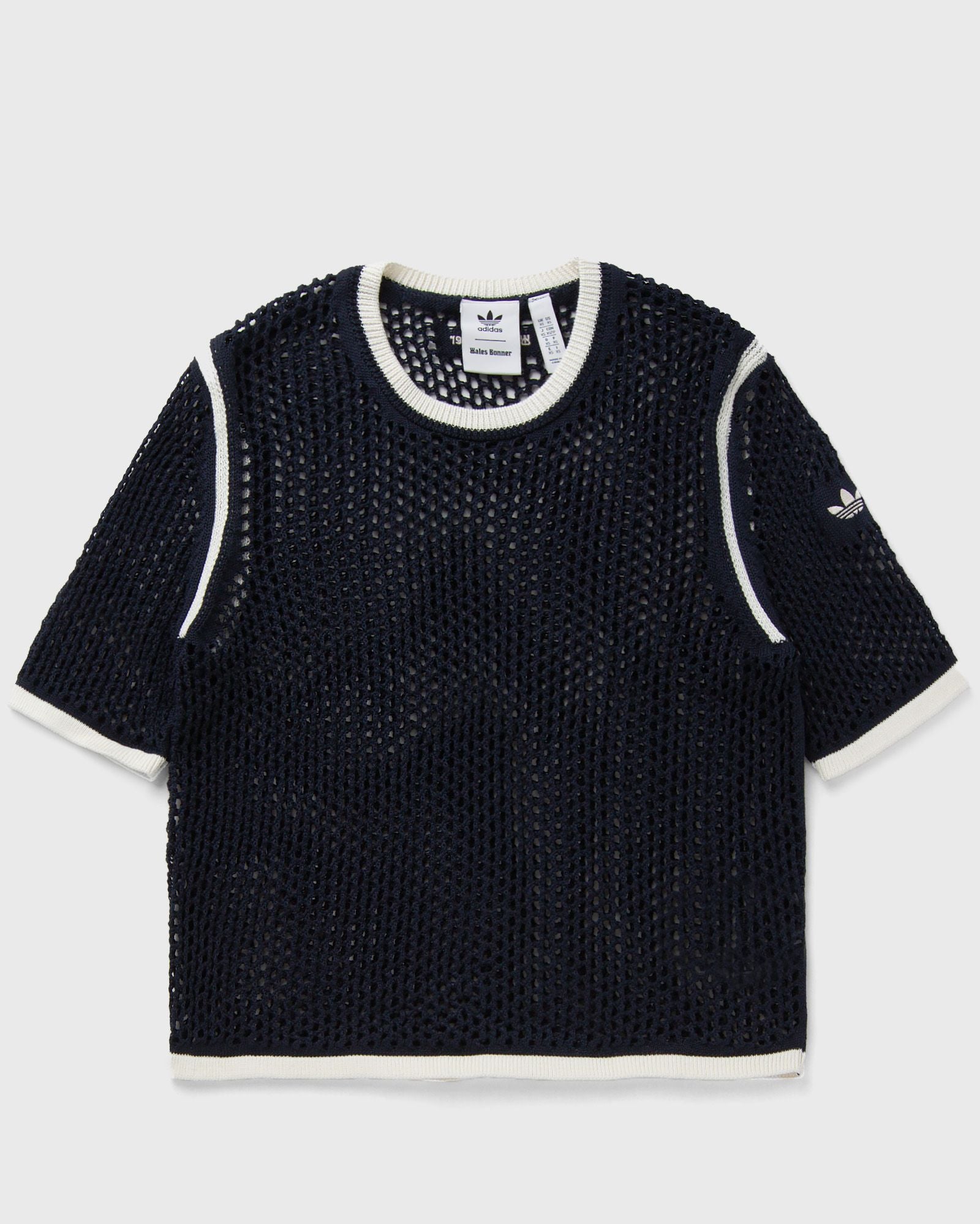 The Spring/Summer 2025 collection from adidas and Wales Bonner combines classic sportswear with elevated craftsmanship. A nautical influence is reflected in the silhouettes, materials and colors, which are inspired by the vibrancy and soulful movement of seaside cities. In this adidas by Wales Bonner Knit Tee, the classic crew neck silhouette is enhanced by a knitted mesh construction. The lightly ribbed details stand out against the Night Navy color. - Crew neck - Short sleeves - Ribbed details
