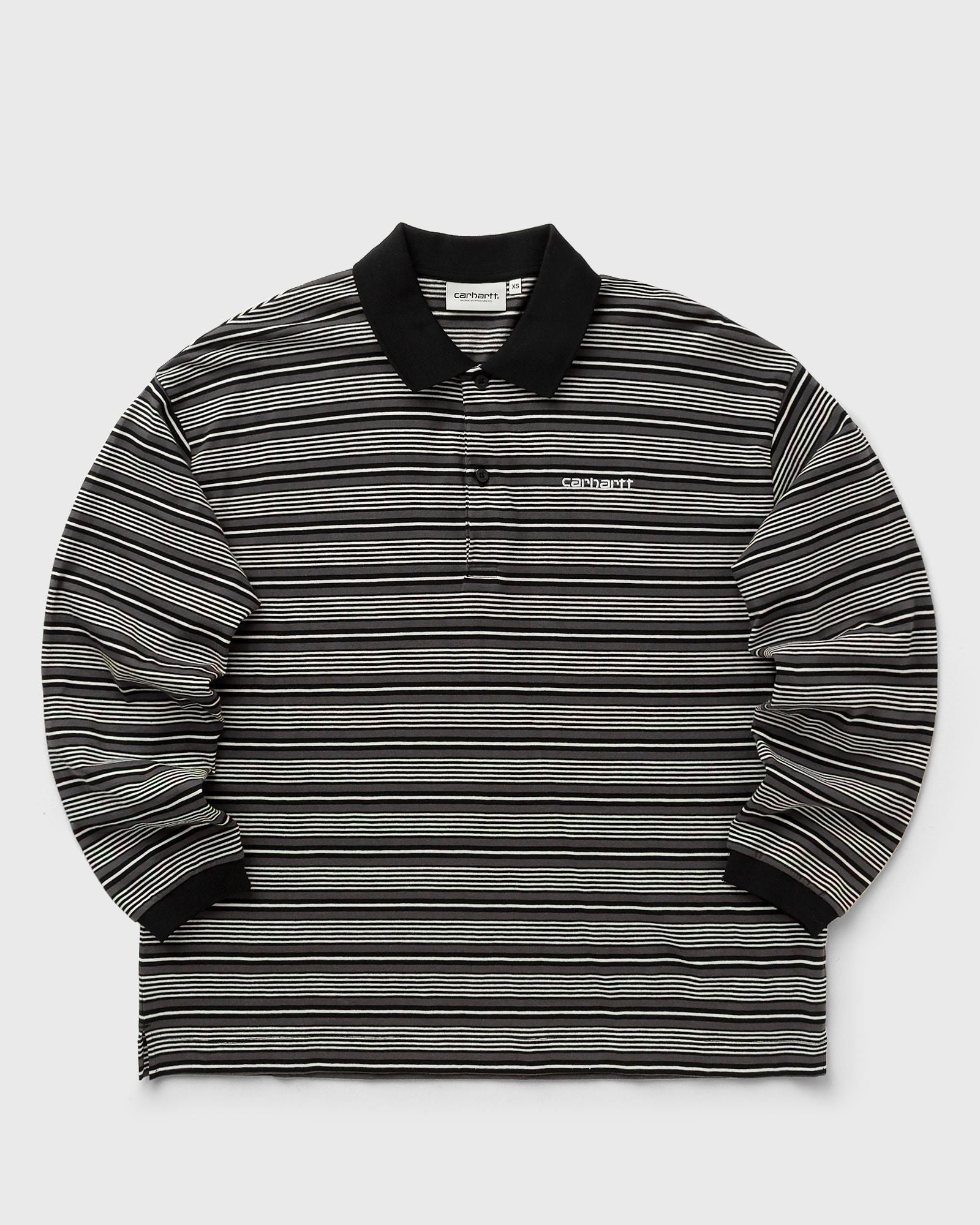 The loose-fitting Carhartt WIP L/S Largo Polo T-shirt is made from medium-weight striped cotton jersey. The collar and cuffs are flat knit. There is an embroidered script logo on the chest. - Loose fit - Yarn-dyed - Flat knit collar and cuffs - Button placket - Embroidered script logo