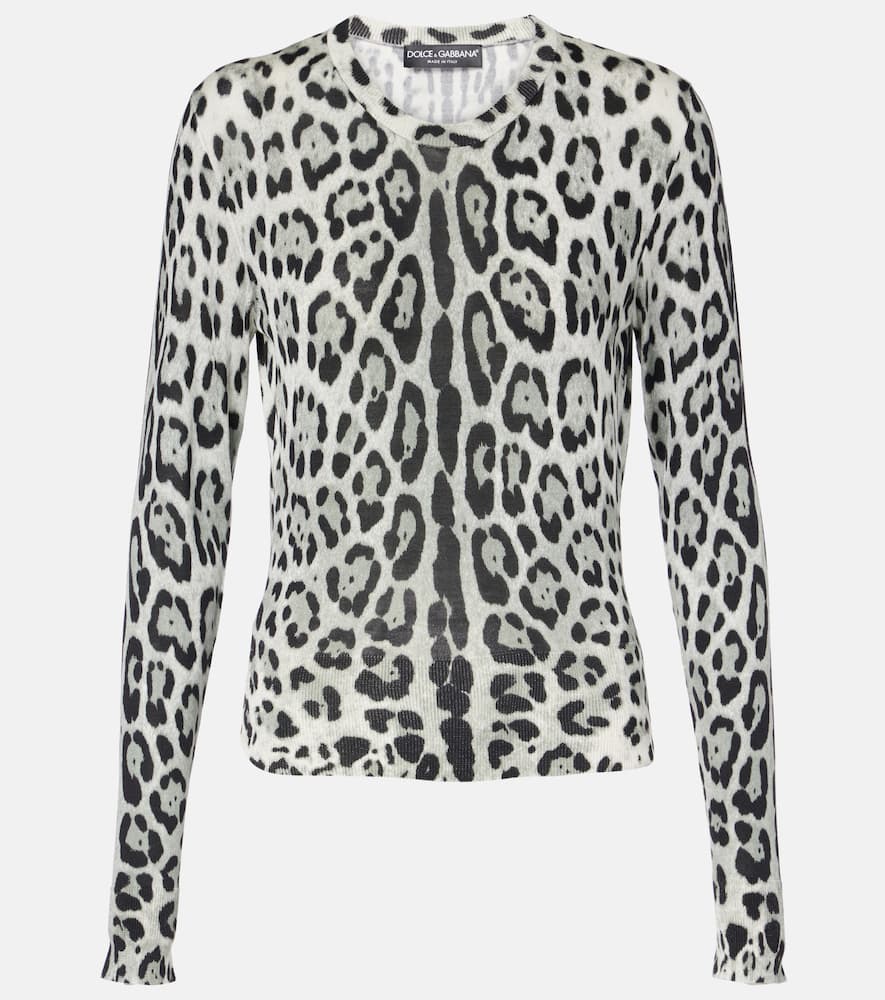 The Dolce & Gabbana Animal-print silk sweater is expertly crafted using material: 100% silk. care instructions: dry clean. made in italy. designer color name: leo nero fdo grigo. silk. — ensuring durability and an unmistakable touch of elegance. Its meticulous construction speaks to Dolce & Gabbana’s dedication to quality and distinctive design.