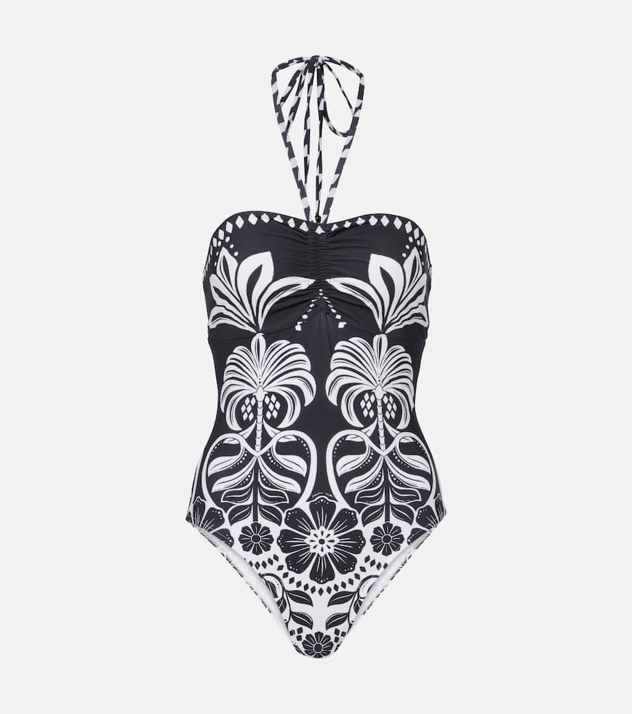 Farm Rio Flowers Leopards halterneck swimsuit