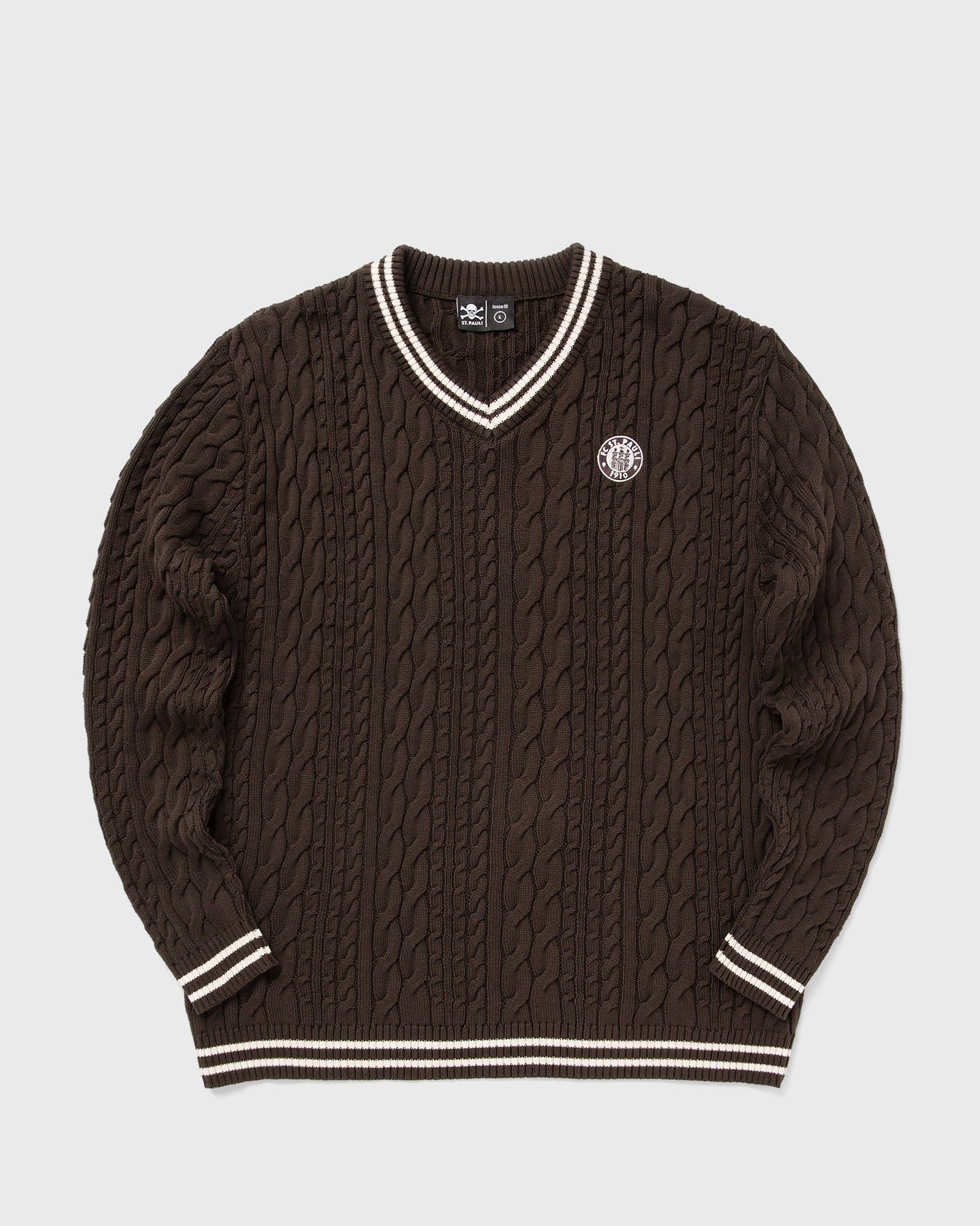 The FC Grand Dad collection by FC St. Pauli takes the German football franchise�s characteristic passion from the pitch and the stands to everyday life: Capturing the essence of the club's well-known 24/7 fan culture, the collection offers cozy off-pitch styles in the team's traditional colors with a distinct vintage aesthetic and relaxed loose fit. - FC St. Pauli Grand Dad knit sweater - Cable knit pattern - Ribbed V-neck - Ribbed cuffs and hem - Embroidered club crest on the chest