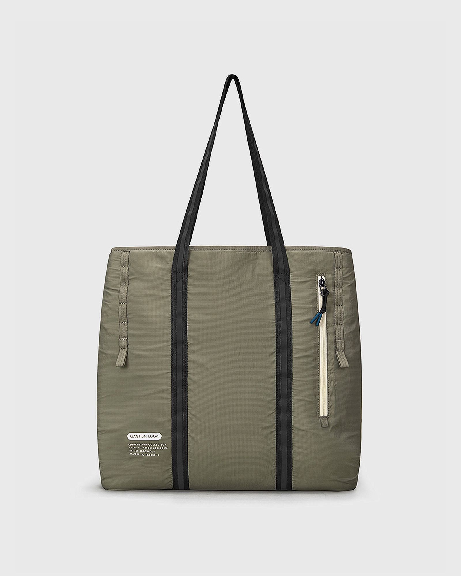 The Lightweight Shopper from Gaston Luga accommodates most 11�-16� laptops in its two separate main compartments with a zip closer, providing good storage for all your essentials. The front has a looped webbing detail for an extra pocket, and the Gaston Luga signature zip offers quick access to smaller items. - Eco friendly recycled nylon main fabric - 3 separated main compartments - Size: 39cm x 38cm x 13cm - Capacity: 19 L - Weight: 0.39 kg