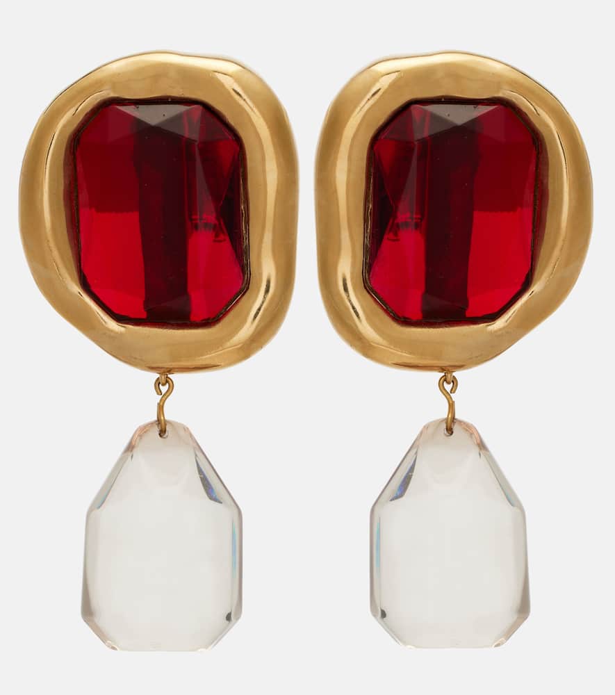 The Givenchy Embellished drop earrings is expertly crafted using material: brass, crystal. made in italy. item color: gold, red. closure: clip-on. — ensuring durability and an unmistakable touch of elegance. Its meticulous construction speaks to Givenchy’s dedication to quality and distinctive design.