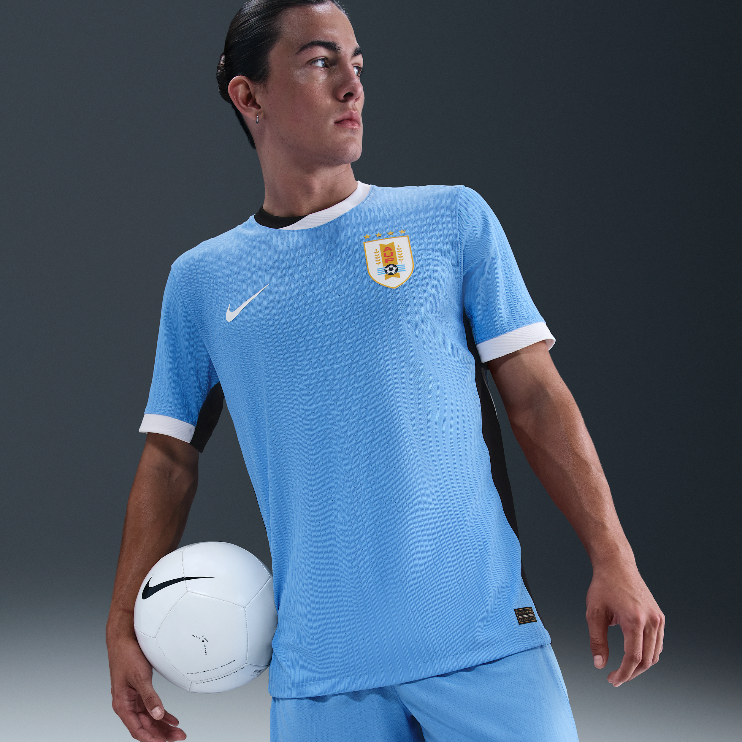 Nuestra colección Match te permite usar exactamente lo mismo que los profesionales. Combinamos detalles de diseño auténticos con una tecnología ligera y de secado rápido para mantener la frescura y la comodidad en el campo. ["Beneficios: Nike Dri-FIT ADV mejora nuestra tecnología absorbente de sudor con enfriamiento avanzado y zonas de transpirabilidad para que mantengas la comodidad sin humedad. El diseño auténtico tiene el mismo look que usan los profesionales."] [] ["Datos del producto: 100% poliéster. Lavar a máquina. Producto importado"] Style: IM8581; Color: Azul universitario/Negro/Blanco; Size: S; Age Group: Adult | Uruguay local 2024/25 Match (selección masculina)