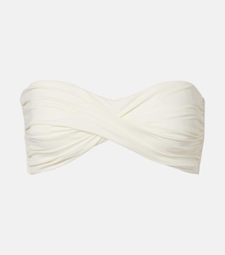 The Johanna Ortiz Tangarana bikini top is a neutral luxury Italian accessory crafted in Italy, designed for refined day-to-evening styling.