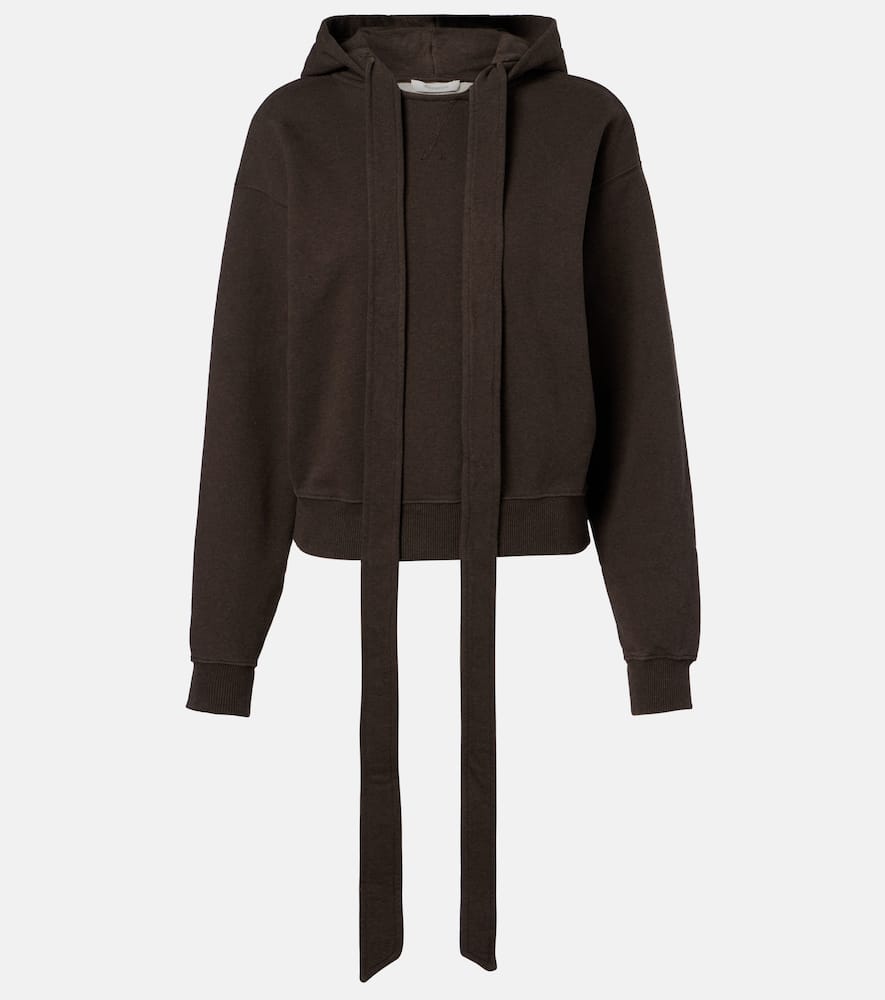The JW Anderson Cotton jersey hoodie is expertly crafted using material: 100% cotton. care instructions: machine wash at 30 degrees. made in portugal. designer color name: dark brown melange. item color: brown. material ii: 96% cotton, 4% elastane. cuff: ribbed. hem: ribbed. self-tie collar. hood. cotton. — ensuring durability and an unmistakable touch of elegance. Its meticulous construction speaks to JW Anderson’s dedication to quality and distinctive design.