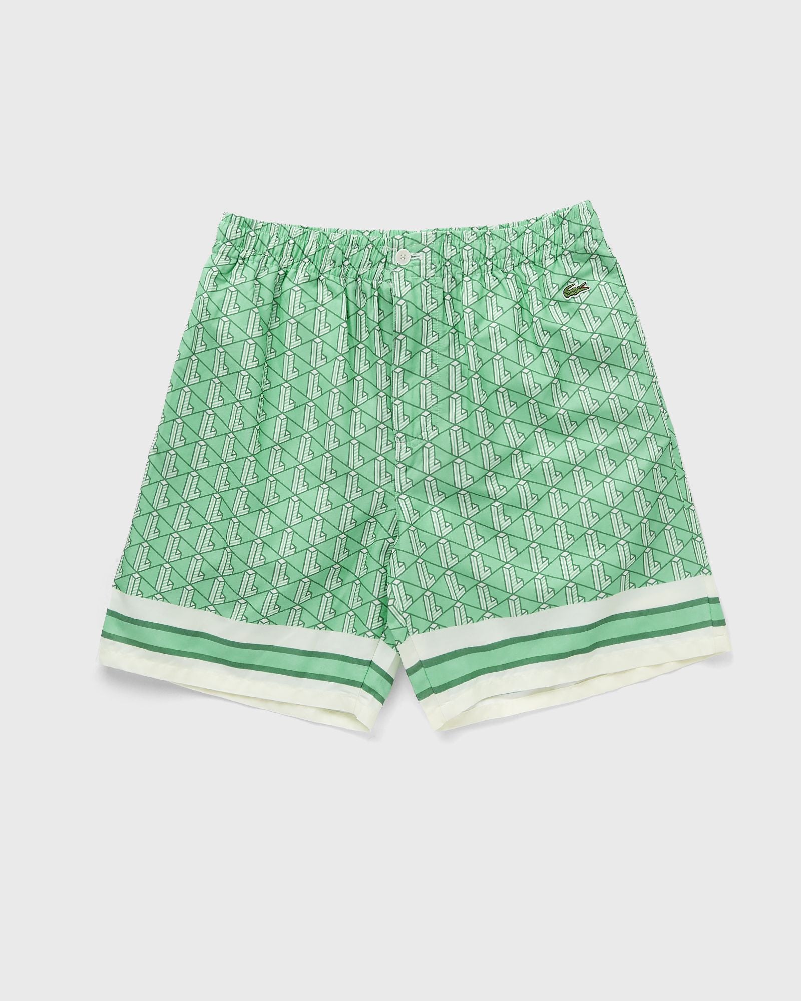 These shorts with signature details from Lacoste are made from twill cotton blend fabric with an iconic all-over monogram print for a distinctive style. Contrast stripes and an embroidered crocodile create a casual look. - Organic cotton blend viscose and twill - Relaxed fit - Elastic waistband with drawstring - All-over monogram print, contrast stripes on leg - Embroidered crocodile on waistband